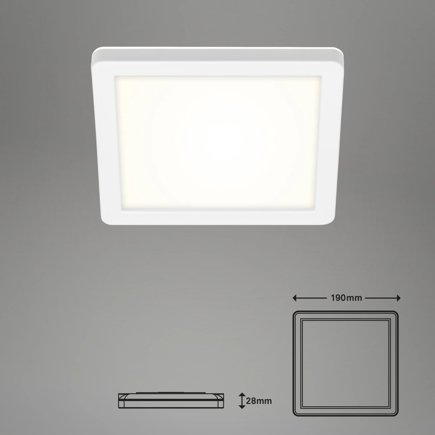 – die Schutzart der Leuchte ist IP44 Durch den Backlight-Effekt der Badleuchte entsteht eine angenehme Atmosphäre und eine optimale Ausleuchtung Die Außendeckenleuchten überzeugt mit energiesparenden 8 Watt, einer Lichtleistung von 1. 200 Lumen, einer Farbtemperatur von 4. 000 Kelvin und einer hohen durchschnittlichen Lebensdauer von ca. 25. 000 Stunden Produktabmessungen: 190x190x28mm (LxBxH)