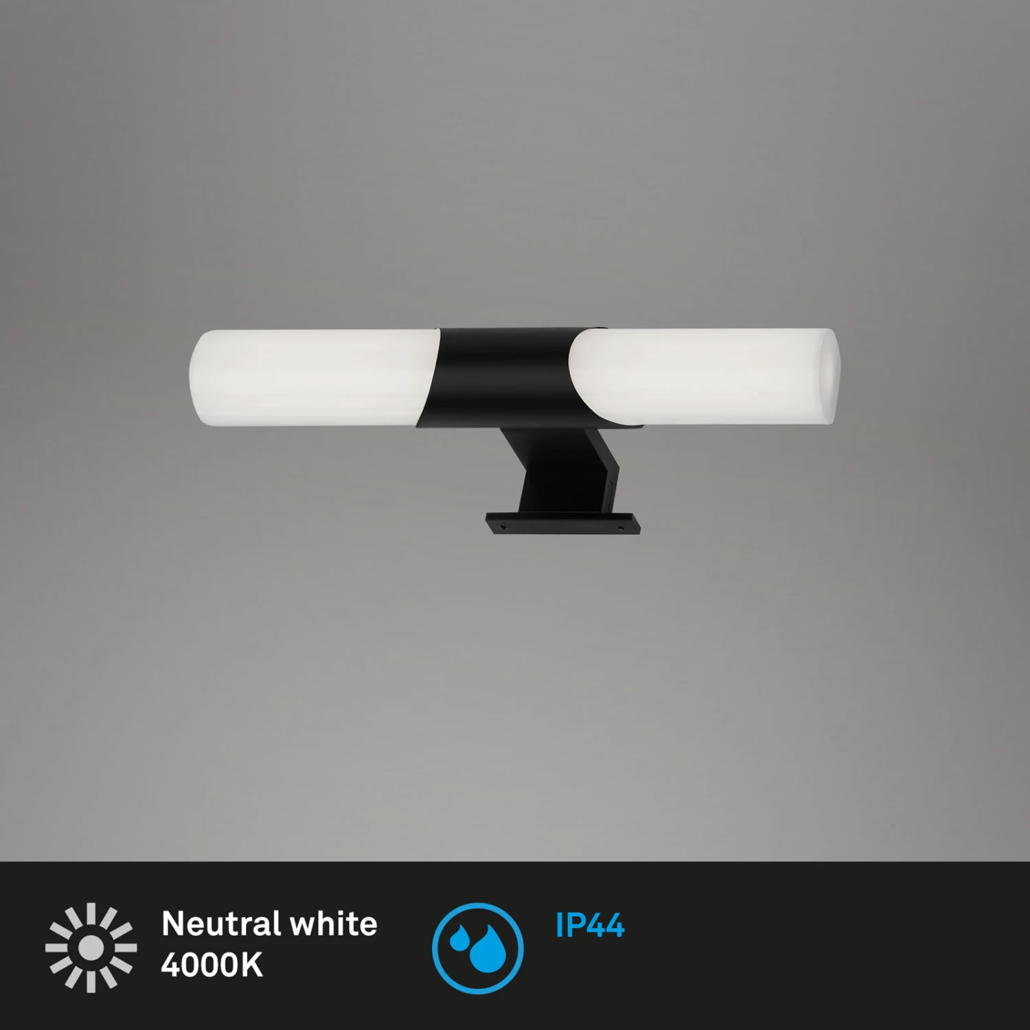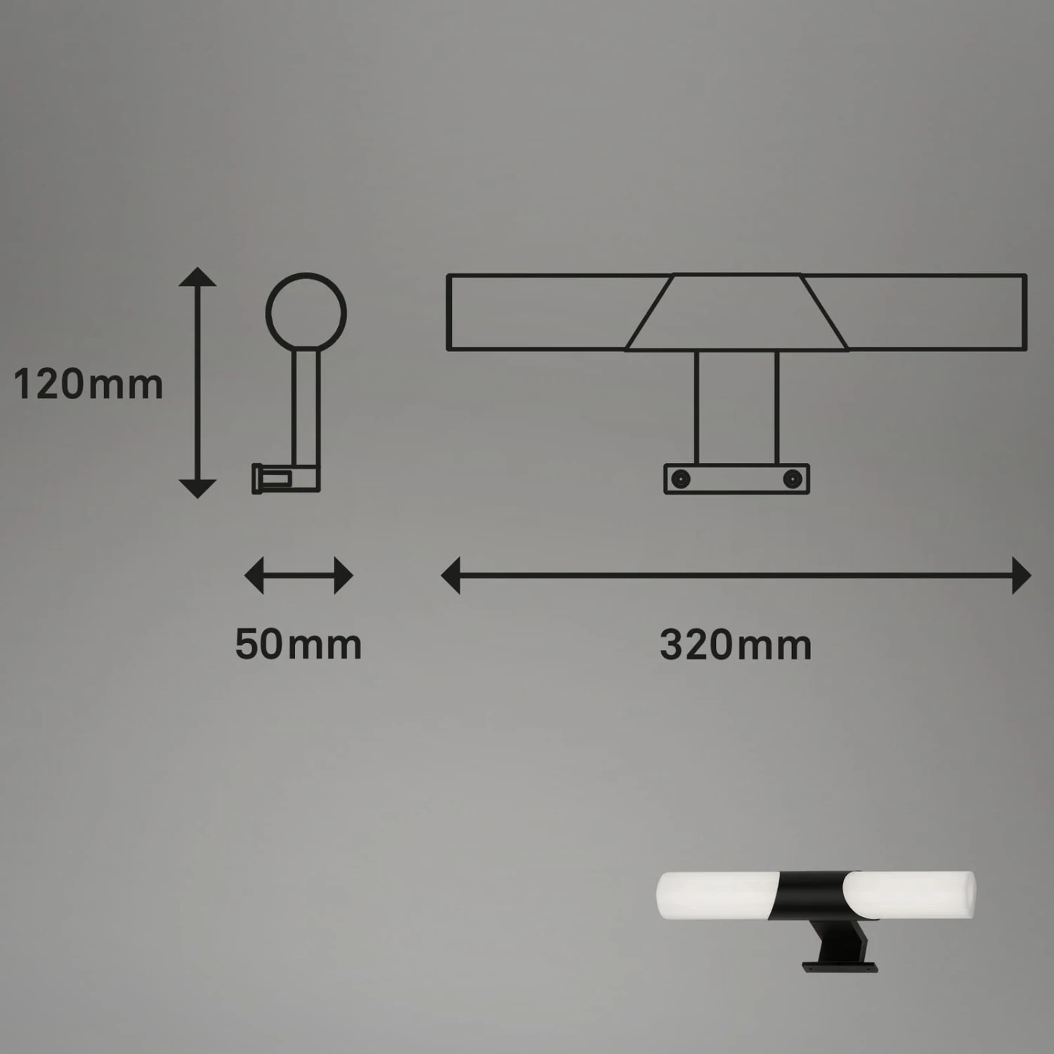 Die mattschwarze LED-Spiegelschrankleuchte verfügt über eine IP44-Schutzzertifizierung und ist damit perfekt für Badezimmer und Gästebäder geeignet. Die spritzwassergeschützte Badezimmerleuchte kann auf einem vorhandenen Spiegelschrank befestigt oder auf einem Spiegel gesteckt werden. Die Spiegellampe wird an das Stromnetz angeschlossen und ist über Ihren Lichtschalter steuerbar (kein Stecker). Das milchige Kunststoffgehäuse dient als Diffusor, der die Blendung verringert und die neutralweiße Farbtemperatur von 4000 Kelvin mit einer Helligkeit von 800 Lumen verbreitet. Sie eignet sich hervorragend zum Auftragen von Make-up oder zum Rasieren. Außerdem kann die LED-Schrankleuchte als Bilderleuchte verwendet werden. Sie ist 320x120x50 mm groß (BxTxH).