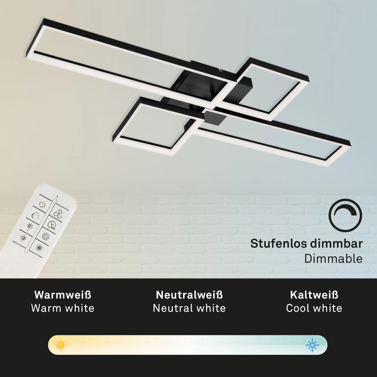 – Die Deckenlampe verfügt über zwei rechteckige und zwei quadratische LED Module wovon zwei drehbar sind, sodass Sie das Licht individuell steuern können.