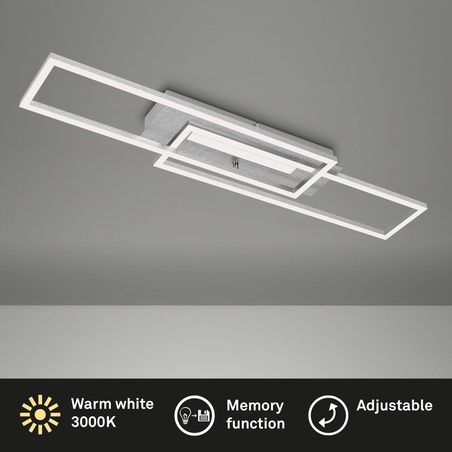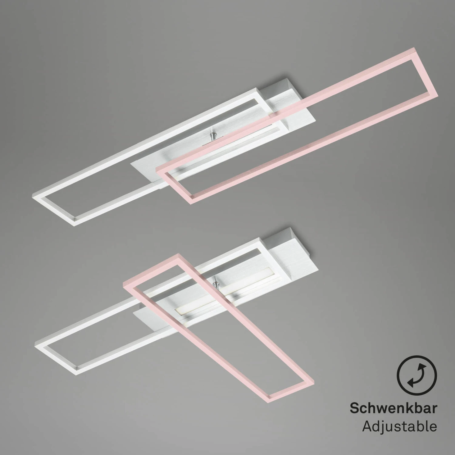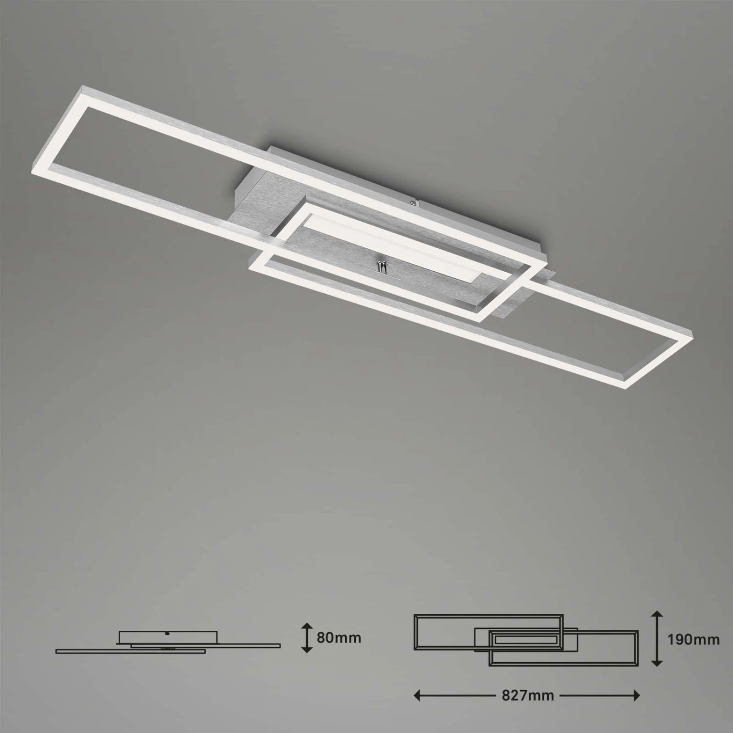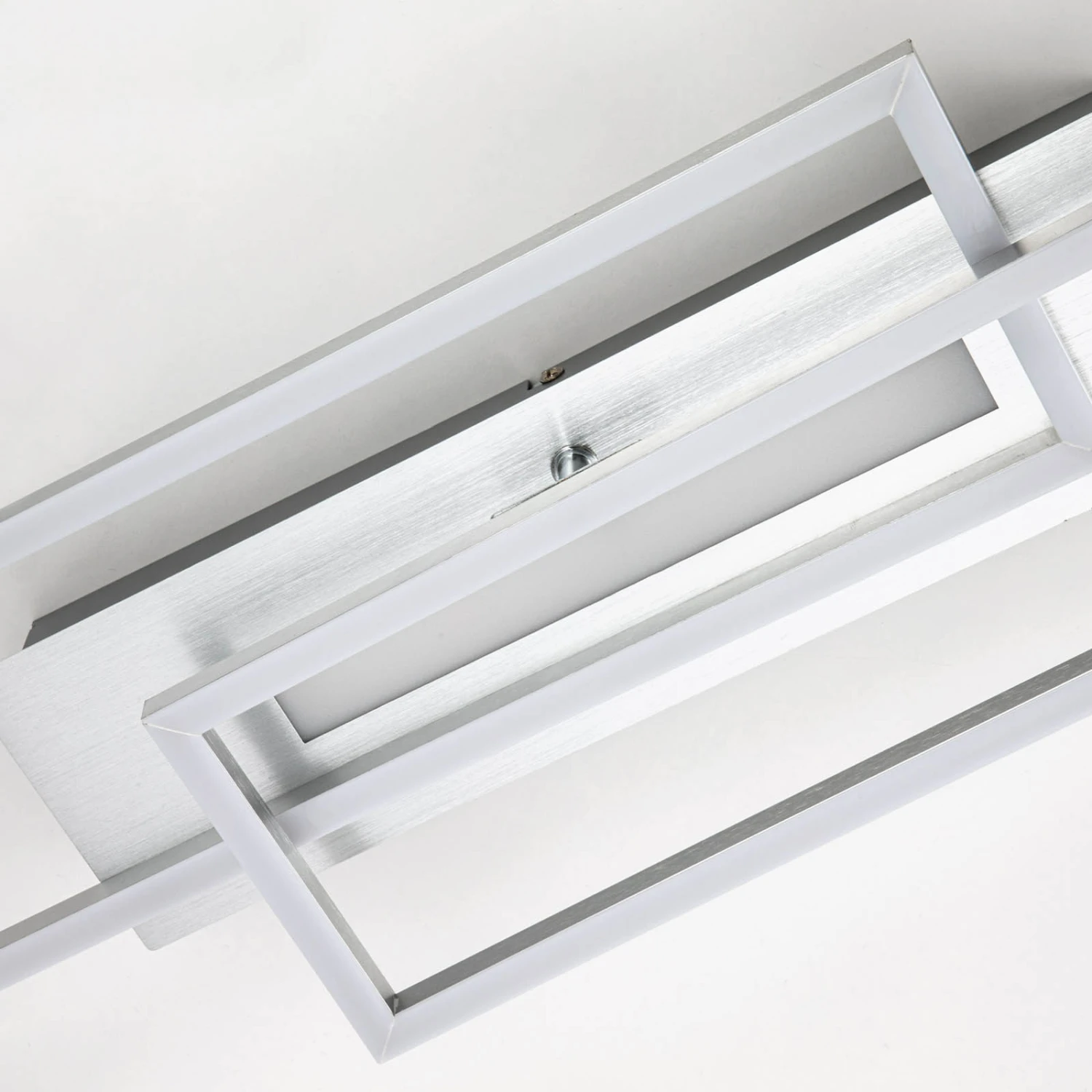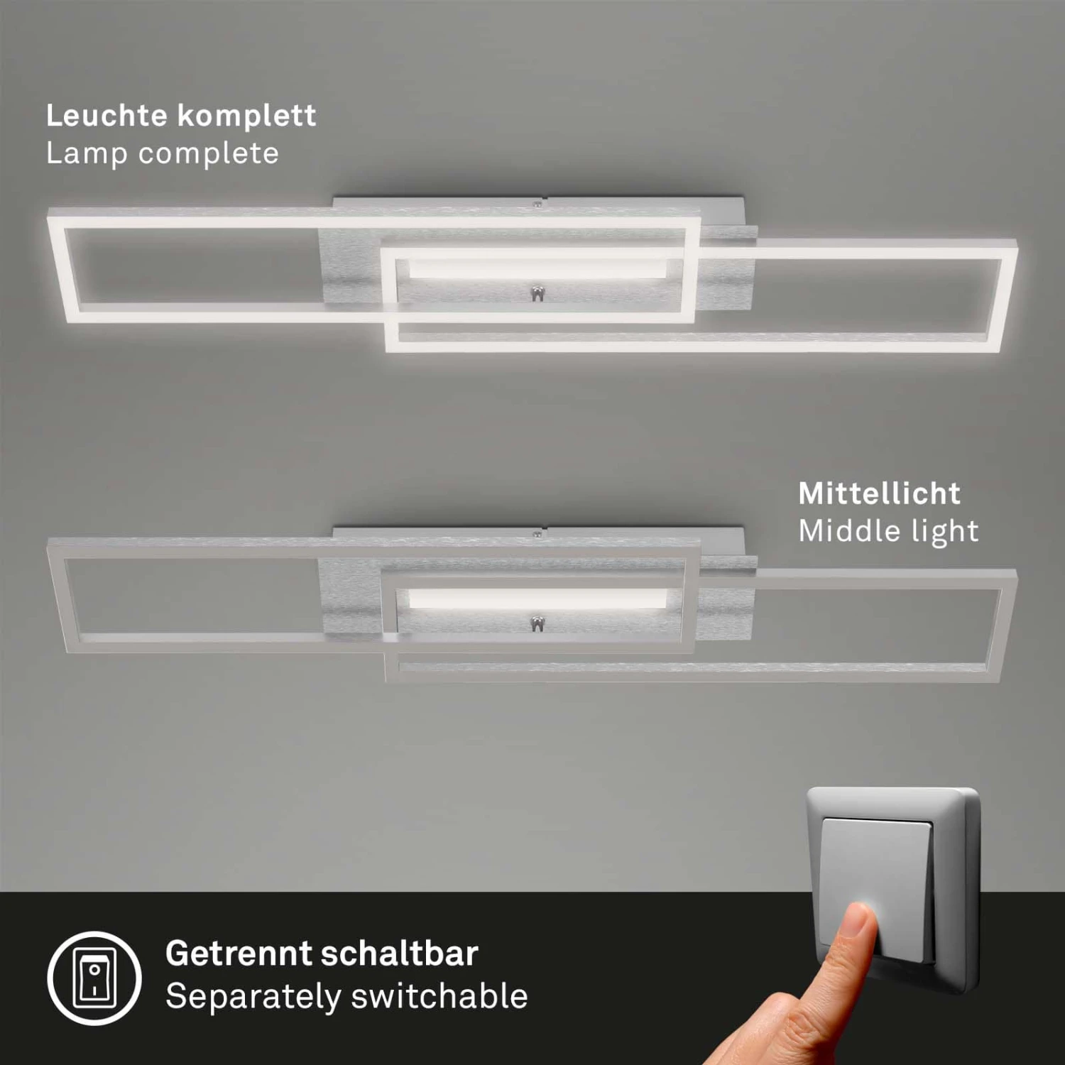 Bei dieser modernen LED Frame-Deckenlampe mit Mittellicht ist von zwei LED Modulen, eins drehbar. Die Optik in gebürstetem Aluminium ist modern und im Trend. Die Bürolampe wird über einen Standard-Lichtschalter bedient. Über diesen haben Sie die Möglichkeit bestimmte Lichteinstellungen vorzunehmen. 1 x Â?AusÂ?