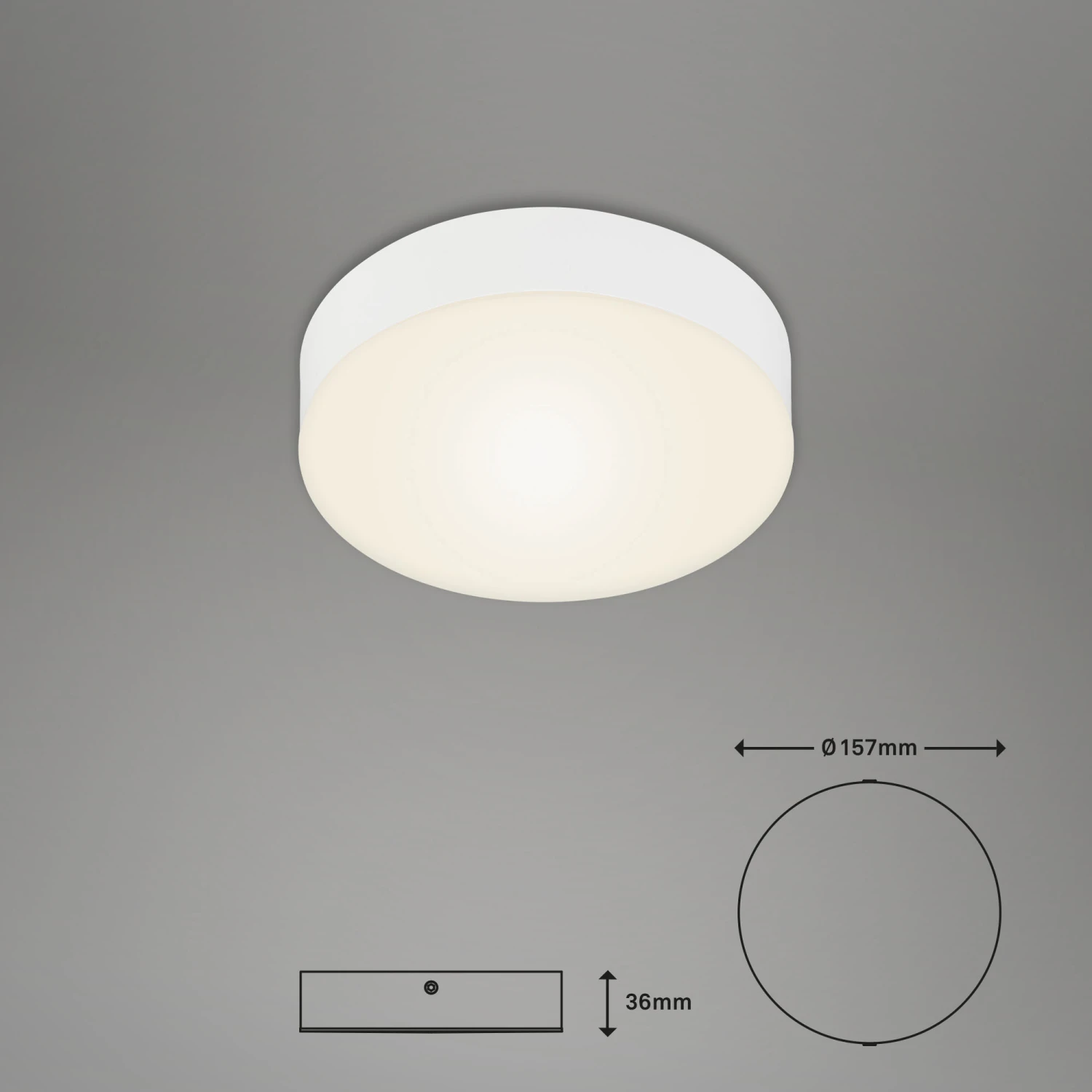 Durch das schöne, rahmenlose Design wird diese Leuchte auch in Ihren Räumlichkeiten zu einem Hingucker und ist vielseitig einsetzbar. Ein besonderes Highlight dieser Deckenleuchte ist das Rahmenlose Design. Damit setzt die Aufbaulampe optische Akzente und setzt sich von herkömmlichen Deckenlampen designtechnisch ab. Mit einer warmweißen Farbtemperatur sorgt die Lampe für eine optimale Wohlfühlatmosphäre. So können Sie die Aufbauleuchte beispielsweise in Wohnzimmer, Schlafzimmer, Flur, Büro oder Kinderzimmer anbringen und für eine optimale Ausleuchtung sorgen. Mit 11 Watt und 1000 Lumen wird für viel Helligkeit sorgt. Die durchschnittliche Lebensdauer liegt bei ca. 25.000 Stunden. Die Schutzart der Leuchte ist IP20. Produktabmessungen: 157×36 mm (DxH)
