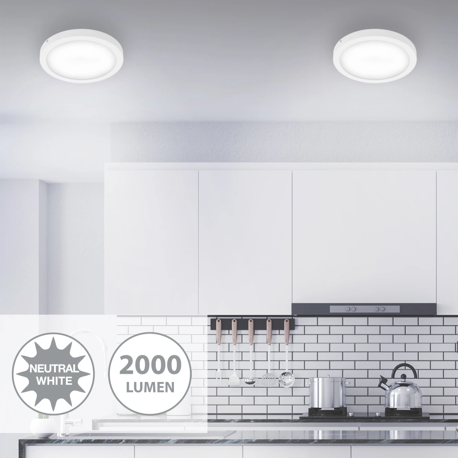 – der weiße Rahmen in einer anderen Nuance lässt die Aufputzleuchte schlicht und edel zugleich erscheinen Die fest verbaute LED Platine überzeugt mit energiesparenden 21 Watt, 2.000 Lumen und einer Farbtemperatur von 4.000 Kelvin (neutralweiße Lichtfarbe)