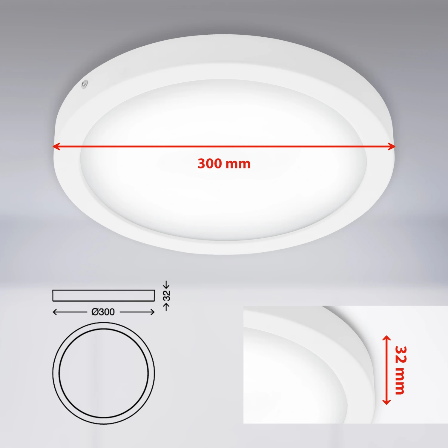 – die Schutzart der Wohnzimmerlampe ist IP20 Produktabmessungen: 300x32mm (DxH)