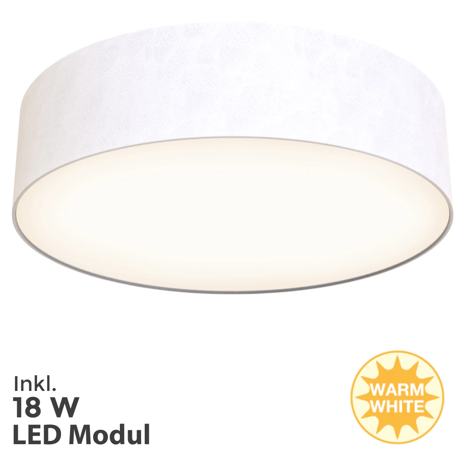 – Moderne Deckenlampe in weiß, gefertigt aus Stoff/Metall