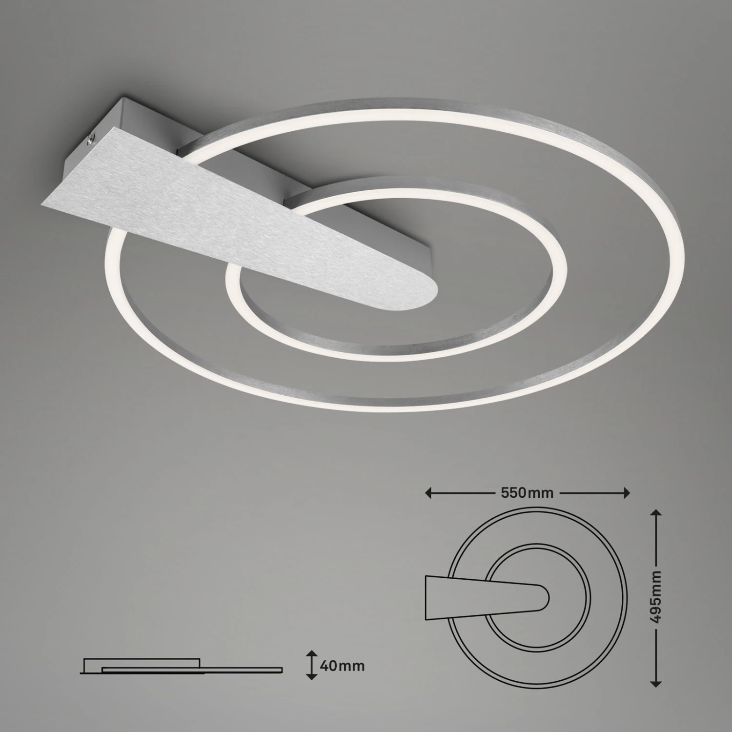 Diese moderne, hochwertige LED Deckenleuchte zaubert auch in Ihr Zuhause eine angenehme, stimmungsvolle Atmosphäre. Vielseitig einsetzbar, z.B. als Wohnzimmerlampe, Schlafzimmerlampe oder Esszimmerlampe, sorgt Sie mit energiesparenden 25 Watt, 3000 Lumen Lichtleistung und einer Farbtemperatur von 3000 Kelvin für eine optimale Ausleuchtung. Durch den integrierten Stufendimmer, der das Dimmen per Lichtschalter ermöglicht, können Sie die Lichtverhältnisse optimal an Ihre Bedürfnisse anpassen. Mit einer durchschnittlichen Lebensdauer von ca. 20000 Stunden ist die edle LED Deckenlampe zudem ein treuer Begleiter. Produktabmessungen: 550x495x40 mm (LxBxH)
