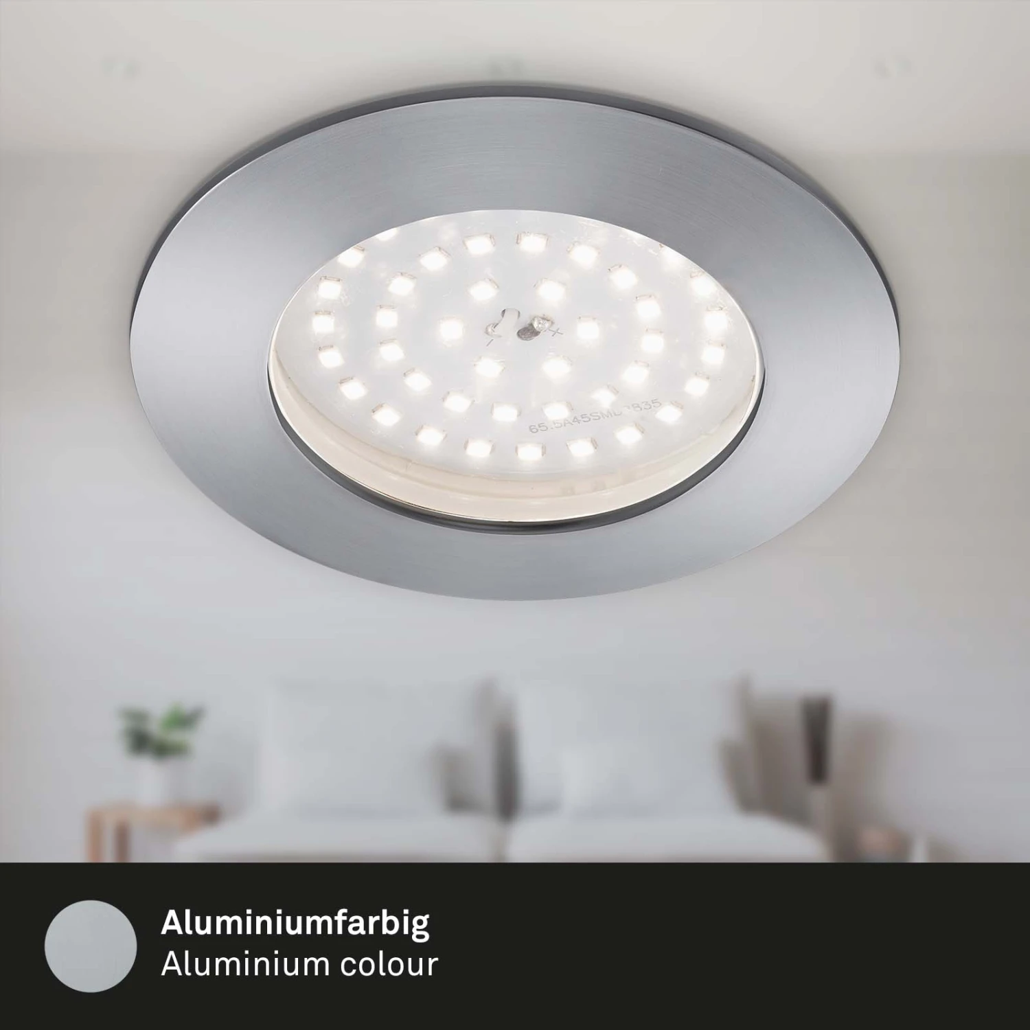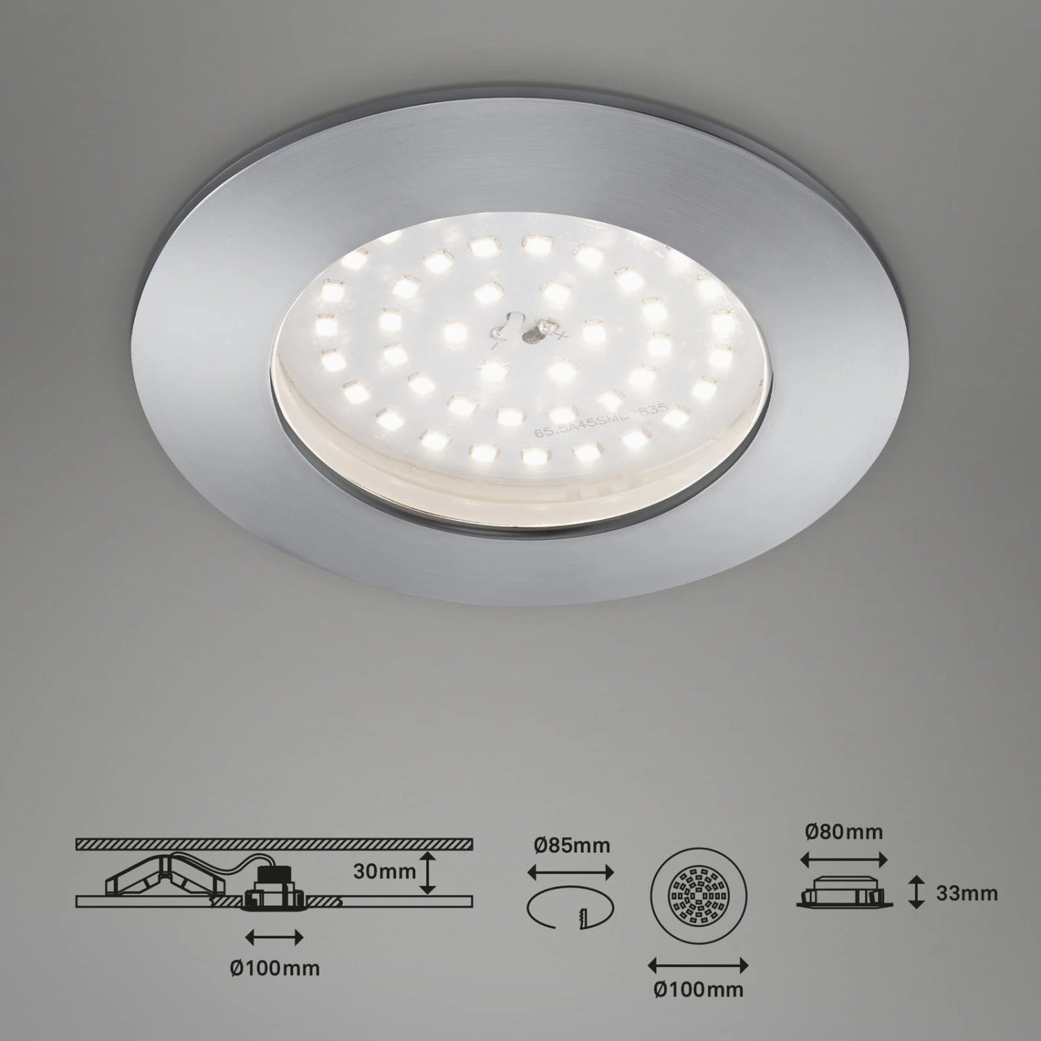 LED Einbauleuchte 1-flammig „ATTACH“ Kunststoff / aluminiumfarbig inkl. 1 x LED-Modul 10,5W 1.000lm 3.000K Lebensdauer 20.000 h, Ra>=80, nicht dimmbar, starr IP44 / Schutzklasse II 100x33mm (DxH) Einbaumaß 85mm (D)