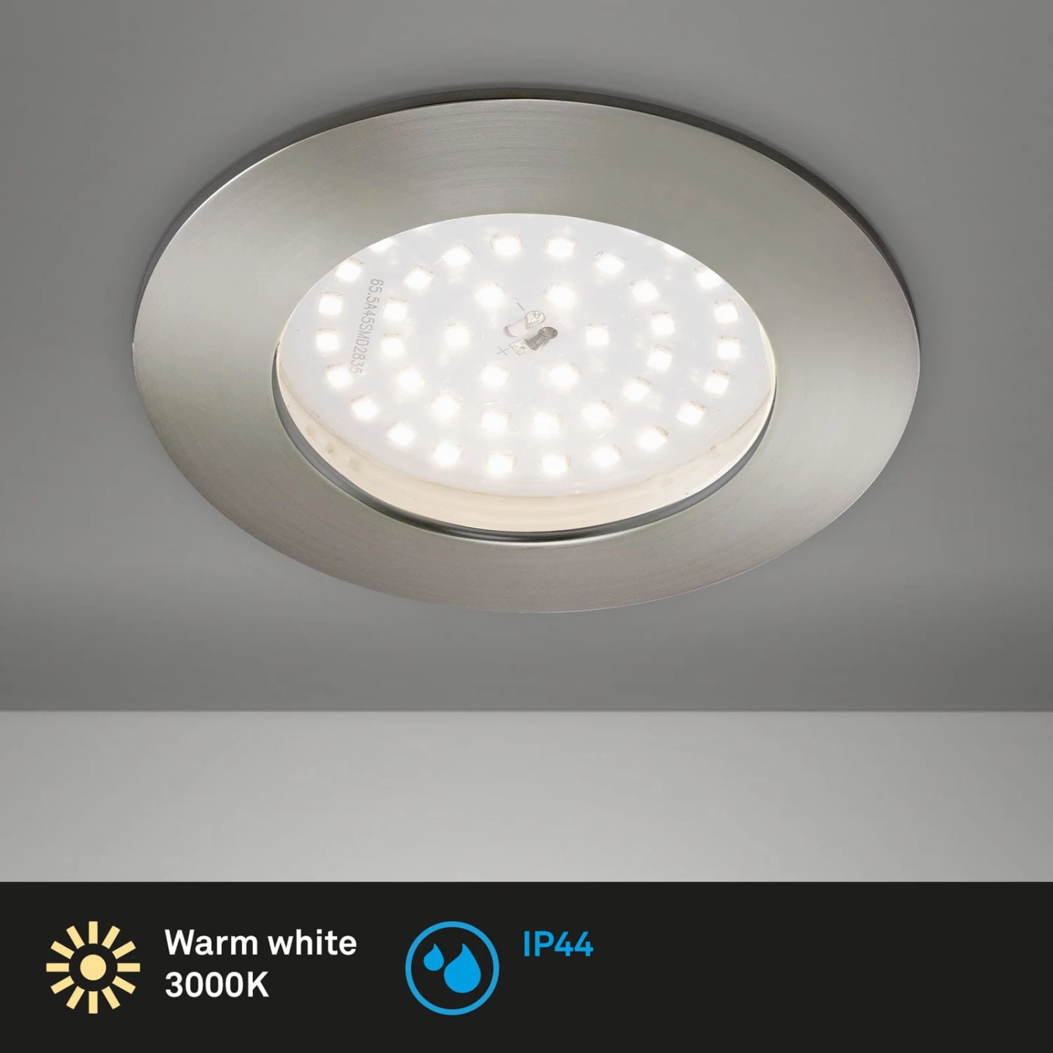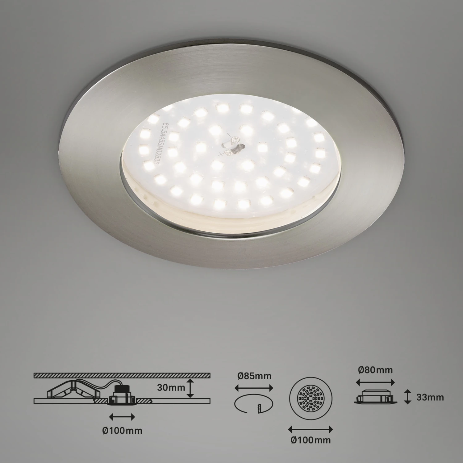 LED Einbauleuchte 1-flammig „ATTACH“ Kunststoff / matt-nickel inkl. 1 x LED-Modul 10,5W 1.000lm 3.000K Lebensdauer 20.000 h, Ra>=80, nicht dimmbar, starr IP44 / Schutzklasse II 100x33mm (DxH) Einbaumaß 85mm (D)