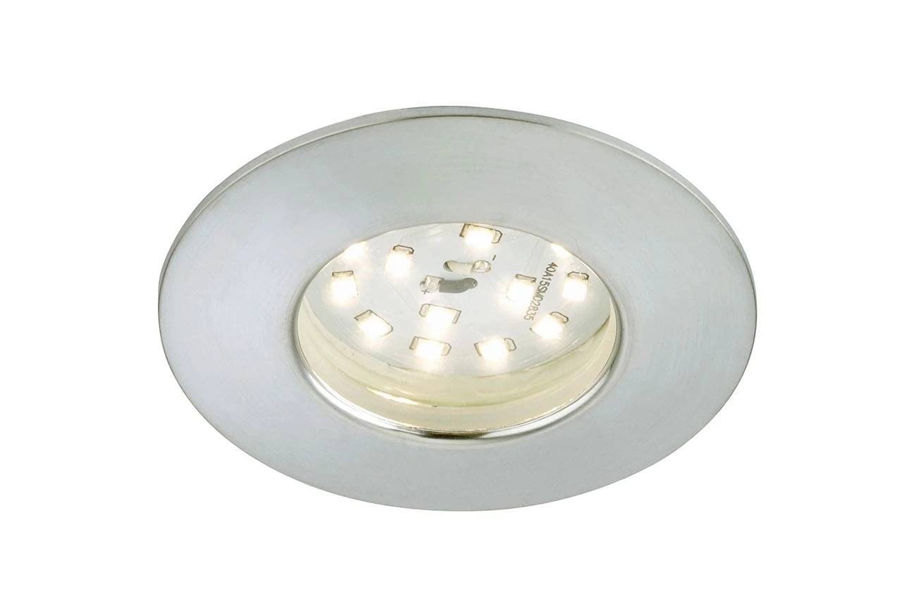 LED Einbauleuchte 1-flammig „ATTACH“ Kunststoff / aluminiumfarbig inkl. 1 x LED-Modul 5W 400lm 3.000K Lebensdauer 20.000 h, Ra>=80, nicht dimmbar, starr IP44 / Schutzklasse II 75x28mm (DxH) Einbaumaß 60mm (D)