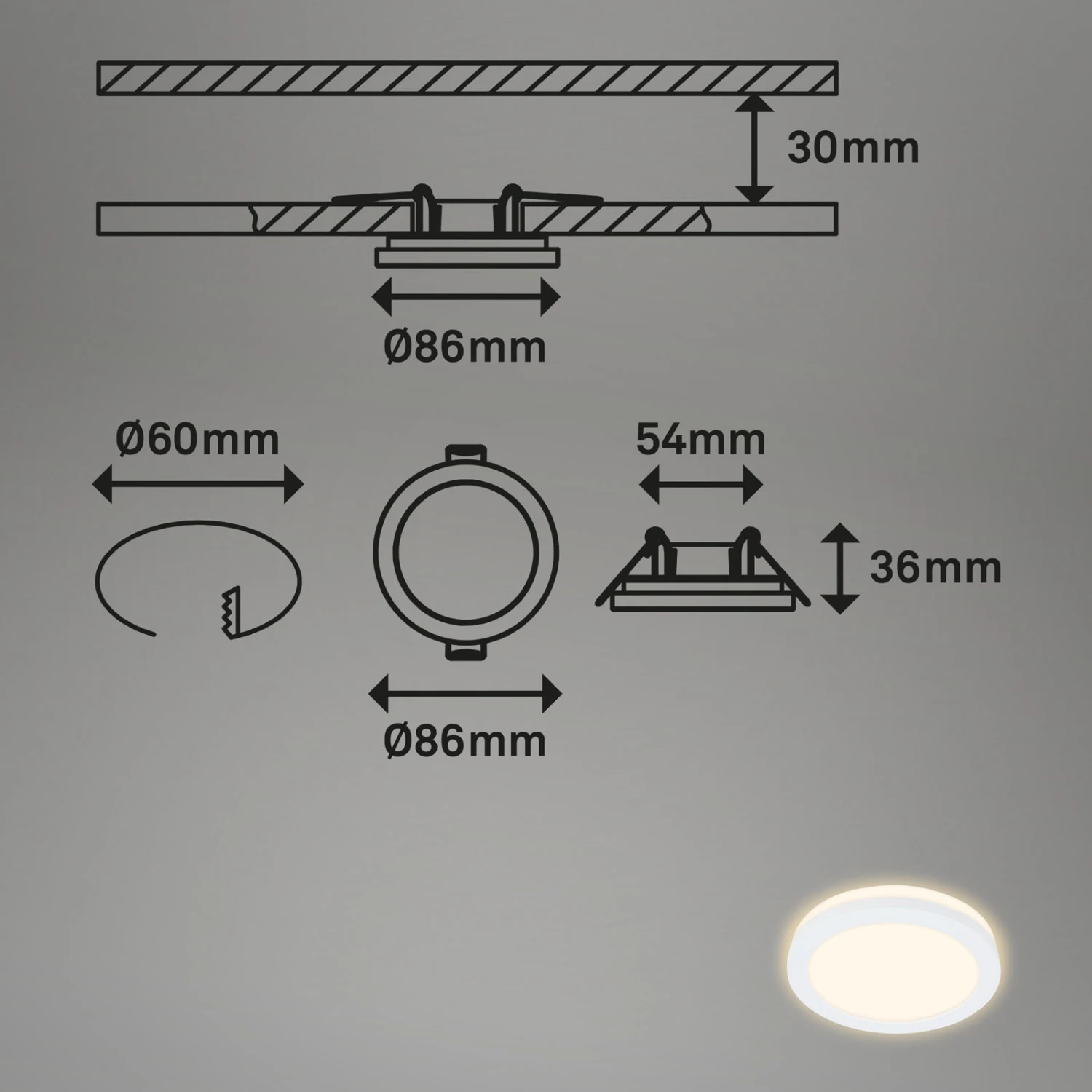 LED-Einbauleuchten, Ø8,4 Cm, 3x LED, 3 W, 350 Lm, Weiß