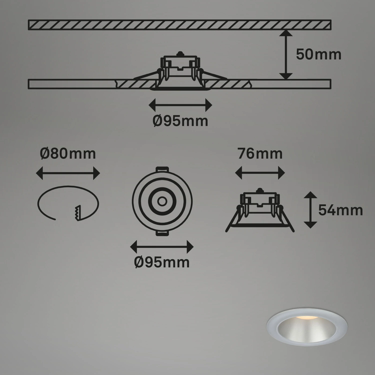 LED Einbauleuchten-Set, Ø9,5 Cm, 3x LED, 4,9 W, 480 Lm, Chrom-matt