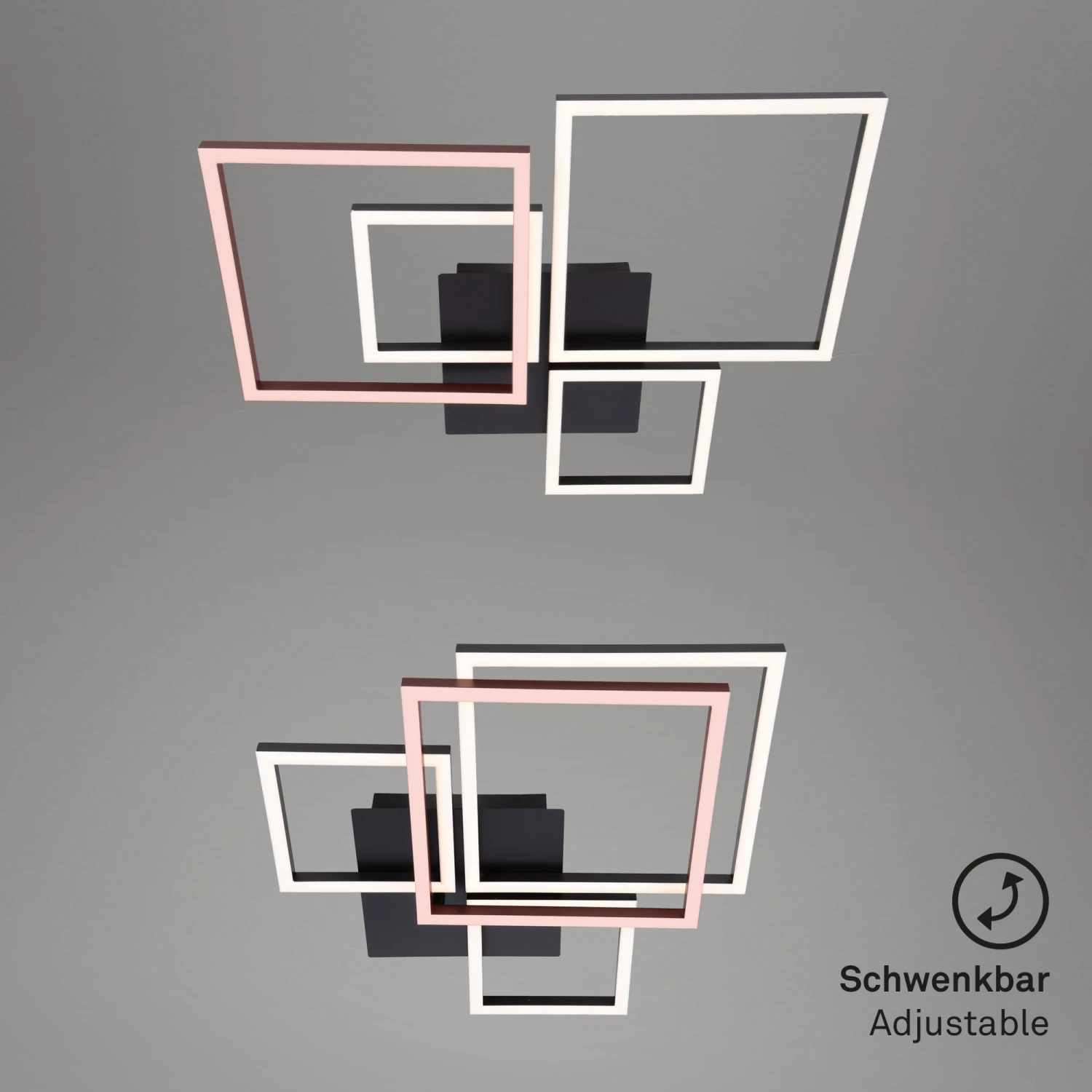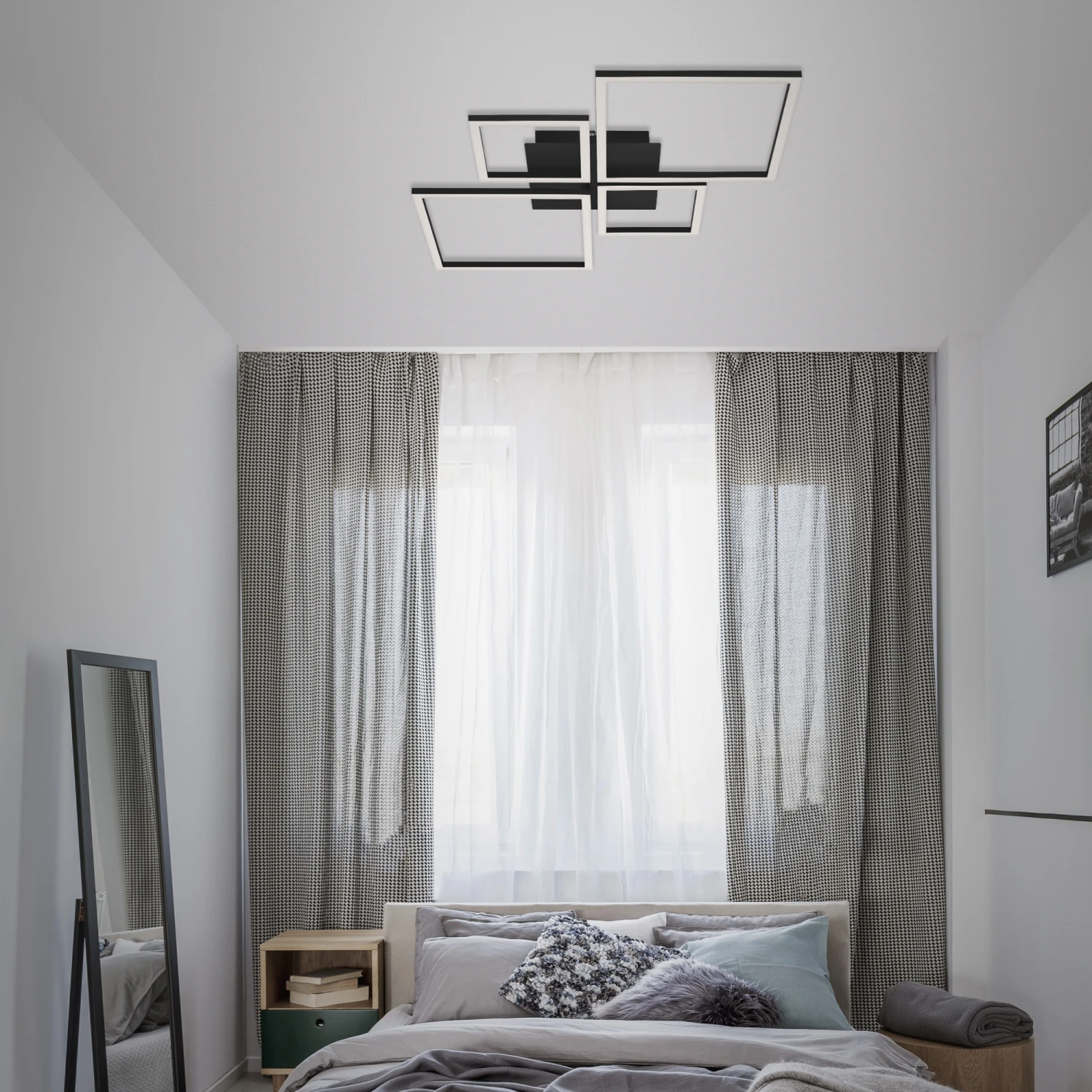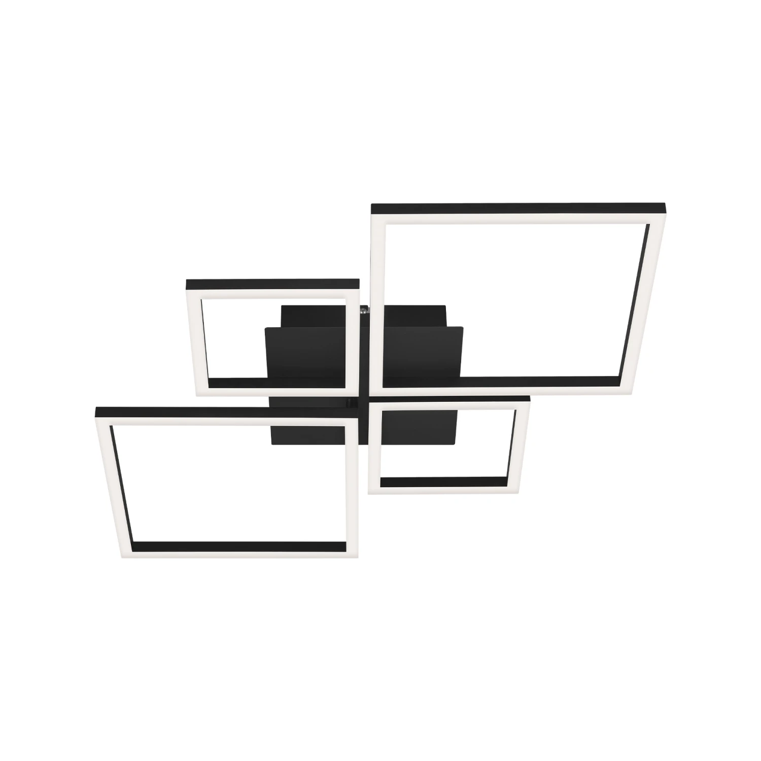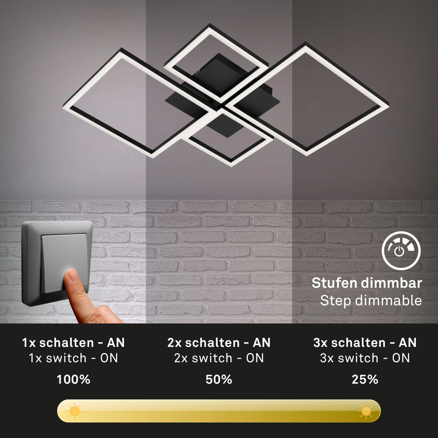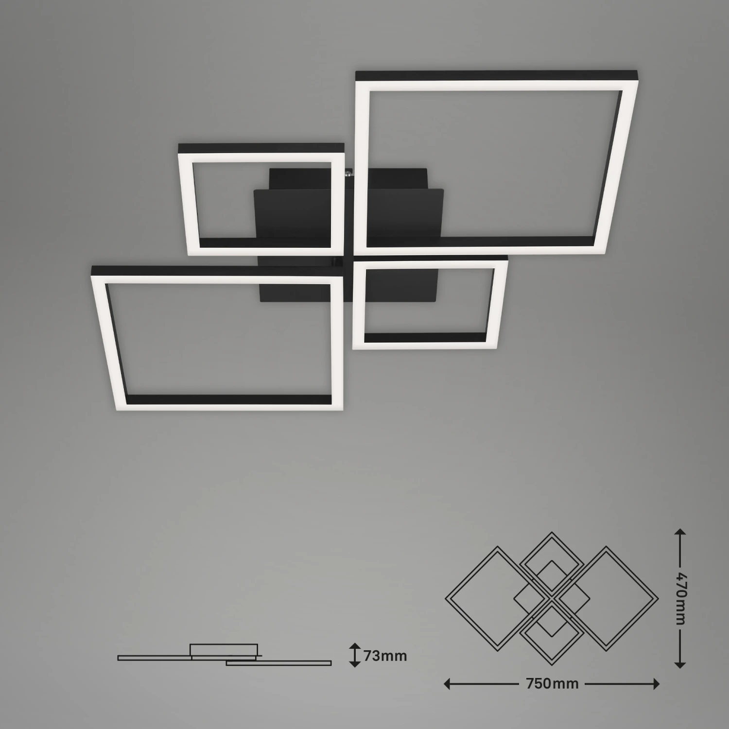 – Moderne LED Deckenlampe mit vier quadratischen LED-Modulen in schwarz, gefertigt aus Metall-Kunststoff