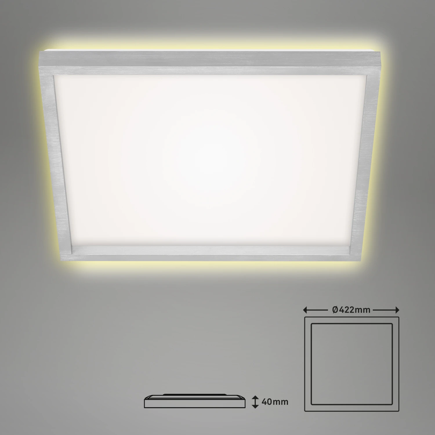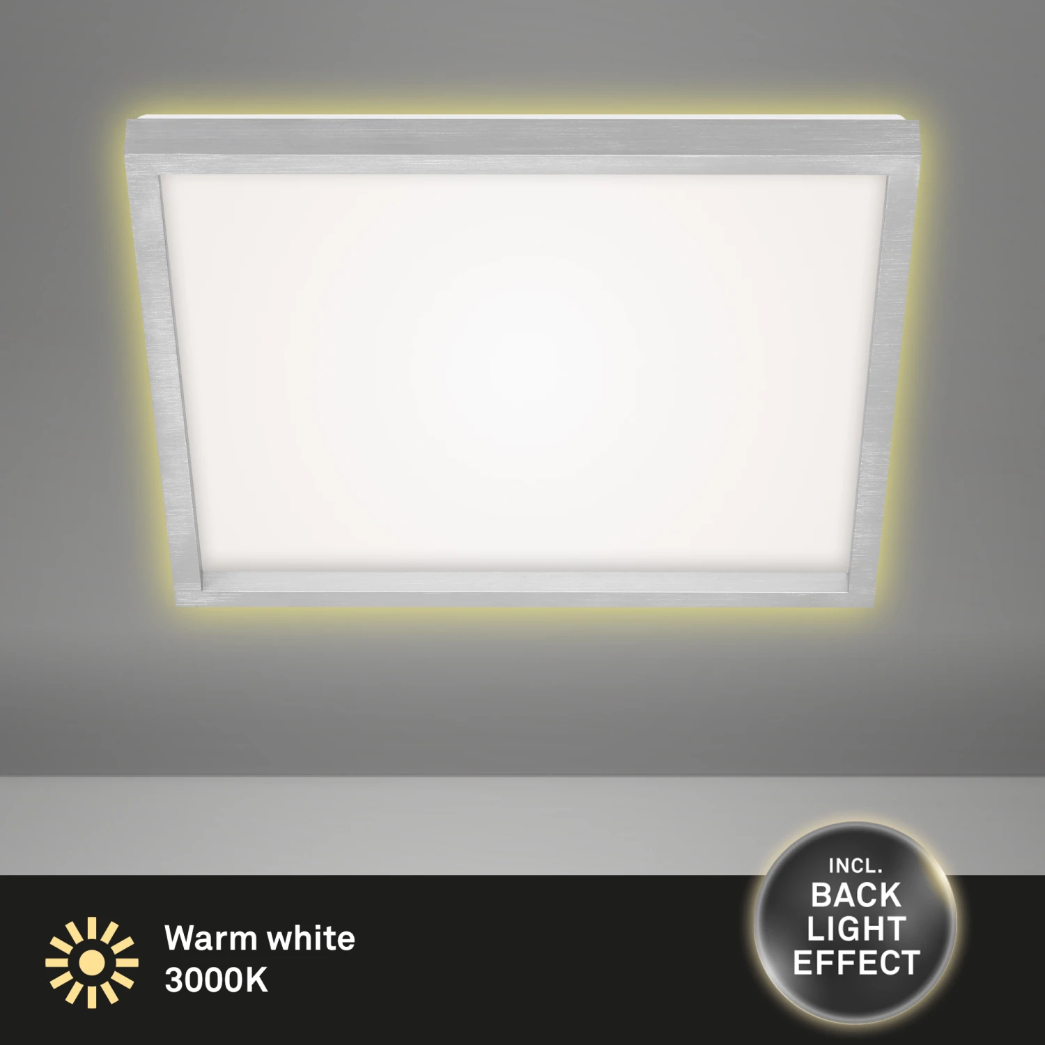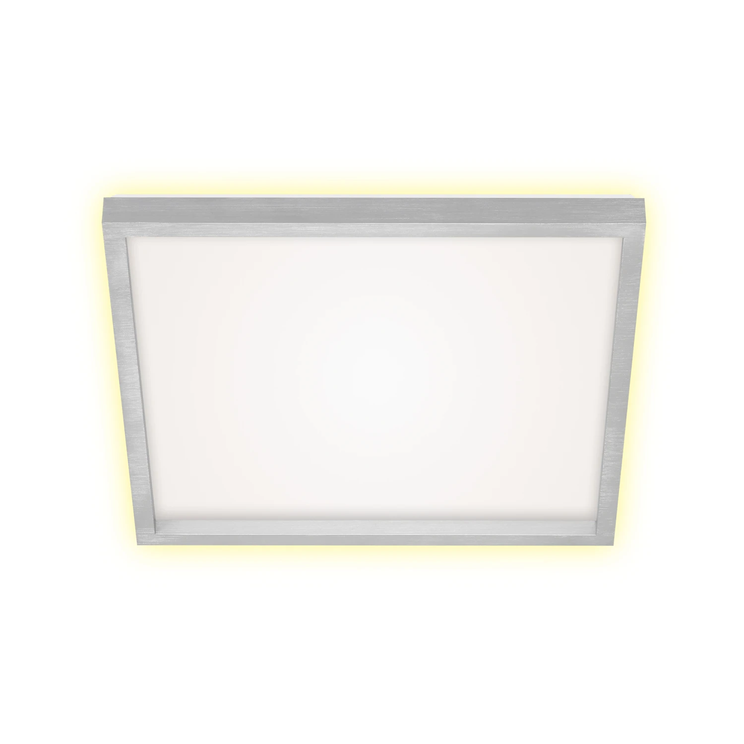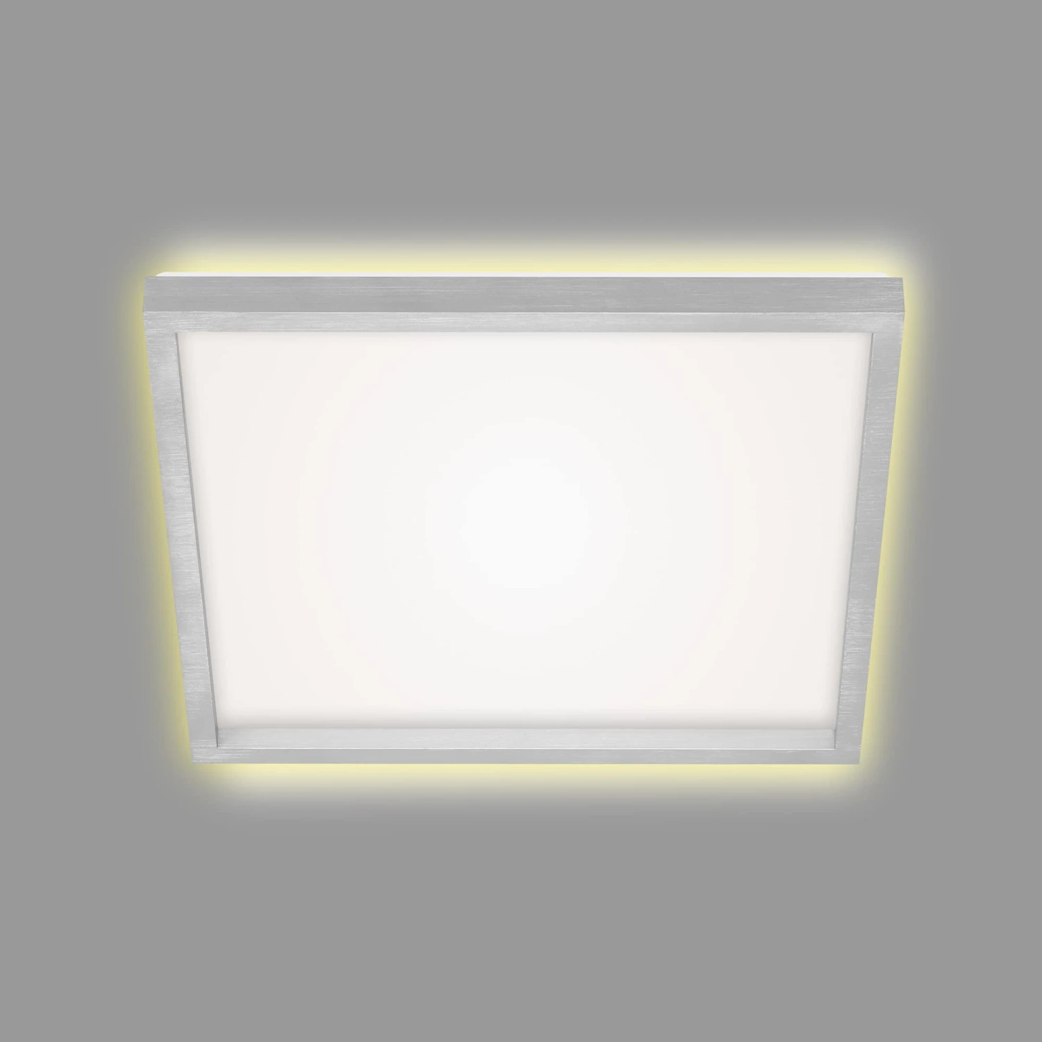 – Durch den aluminiumfarbenen Aufsatzrahmen wird diese Deckenlampe zu einem Blickfang in Ihrem Wohnbereich.