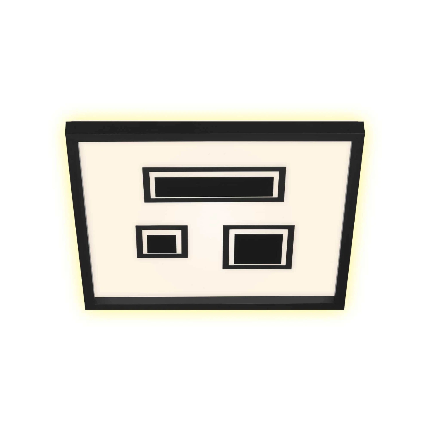 LED Deckenleuchte mit Hintergrundbeleuchtungseffekt, Aufsatzrahmen und Dekorelementen Kunststoff / schwarz inkl. 1 x LED Platine 22W 3.000lm 3.000K Lebensdauer 25.000h, Ra>=80 nicht dimmbar, inkl. indirektem Hintergrundbeleuchtungseffekt und Dekorelementen IP20 423x423x41mm (LxBxH)