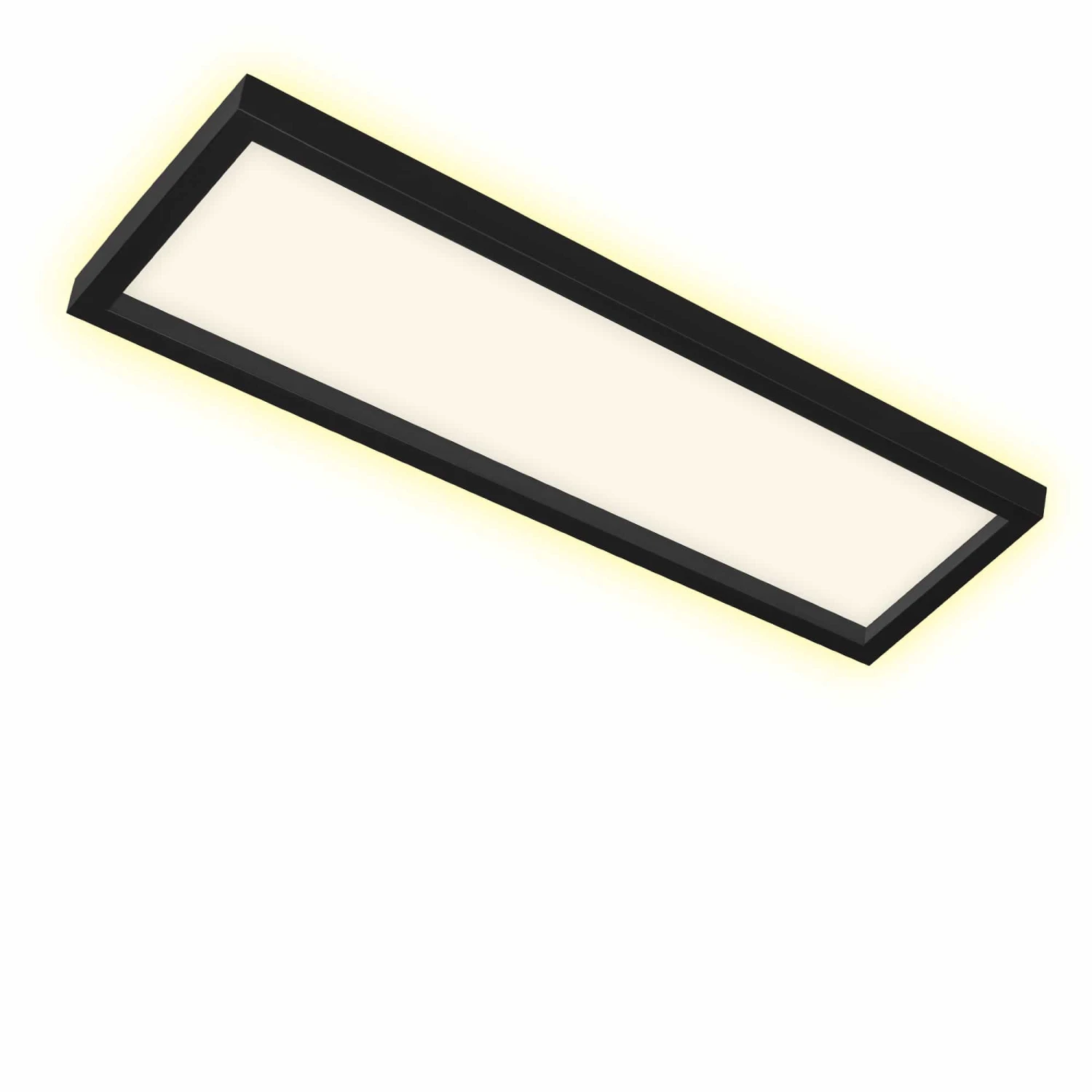 – Moderne, rechteckige LED Deckenleuchte in weiß mit schwarzem Rahmen, gefertigt aus Kunststoff