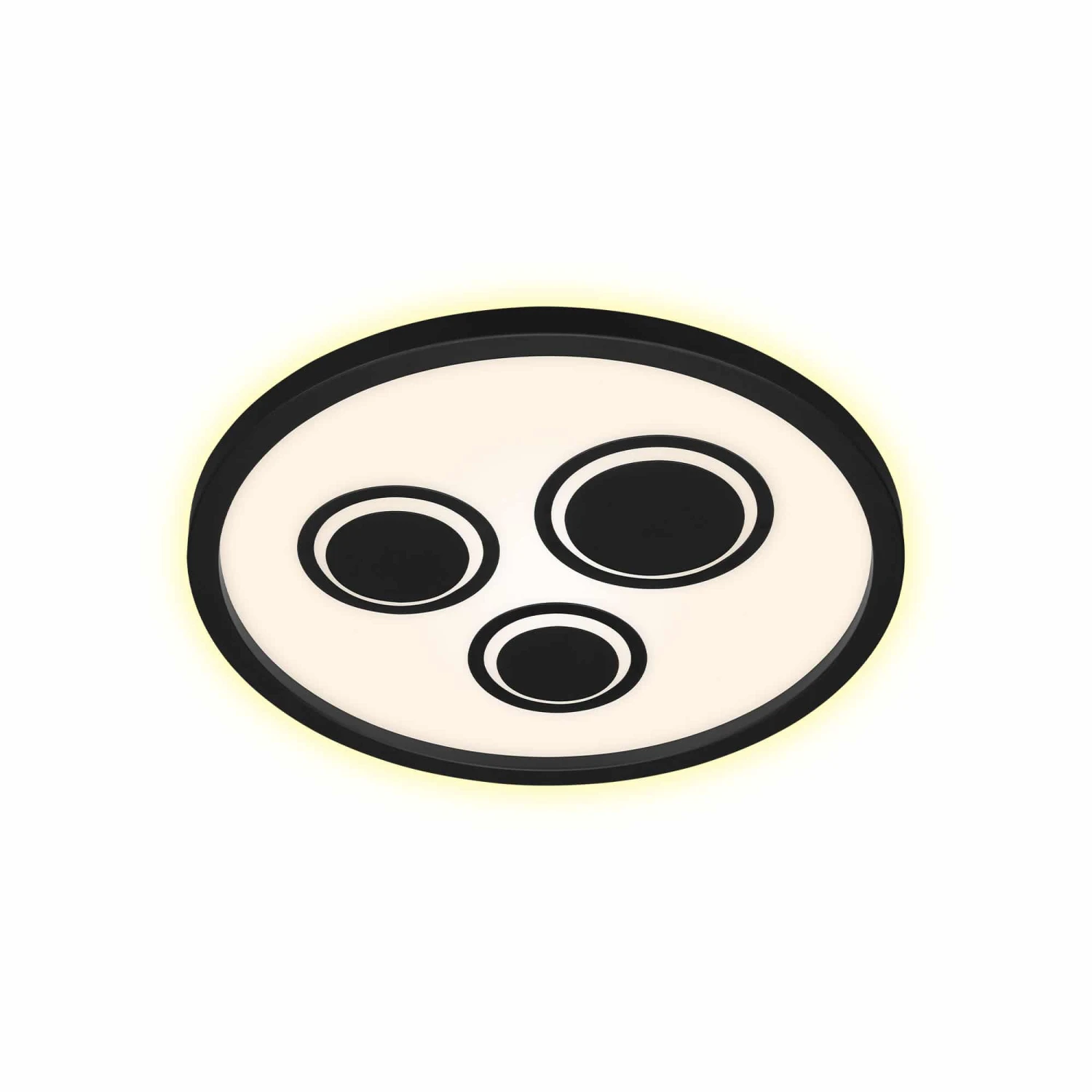 LED Deckenleuchte mit Hintergrundbeleuchtungseffekt, Aufsatzrahmen und Dekorelementen Kunststoff / schwarz inkl. 1 x LED Platine 22W 3.000lm 3.000K Lebensdauer 25.000h, Ra>=80 nicht dimmbar, inkl. indirektem Hintergrundbeleuchtungseffekt und Dekorelementen IP20 423x37mm (DxH)