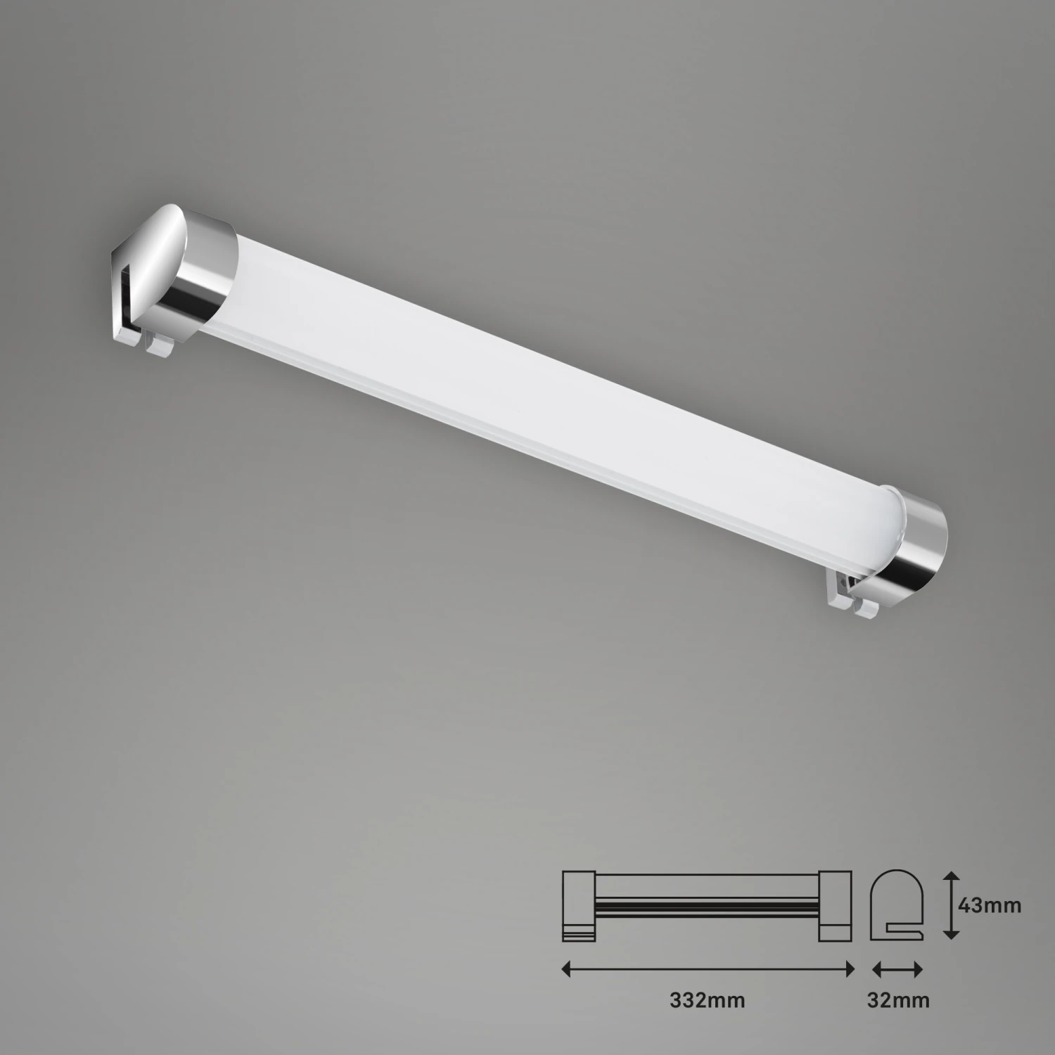 LED Bad-Spiegelleuchte „SPLASH“ Kunststoff / chrom inkl. 1 x LED-Modul 8W 720lm 4.000K Lebensdauer 20.000h, Ra>=80, nicht dimmbar IP44 332x32x43mm (LxBxH)