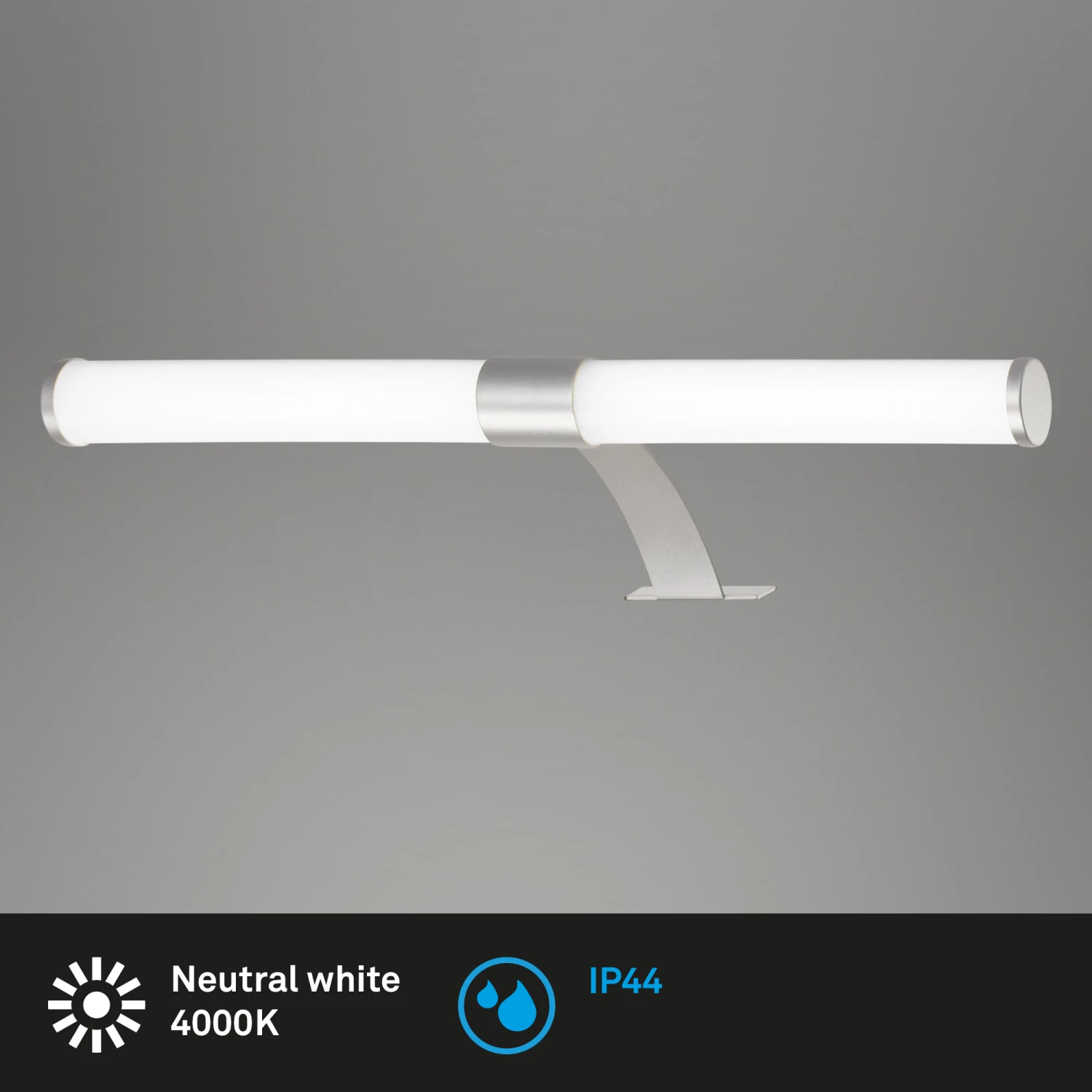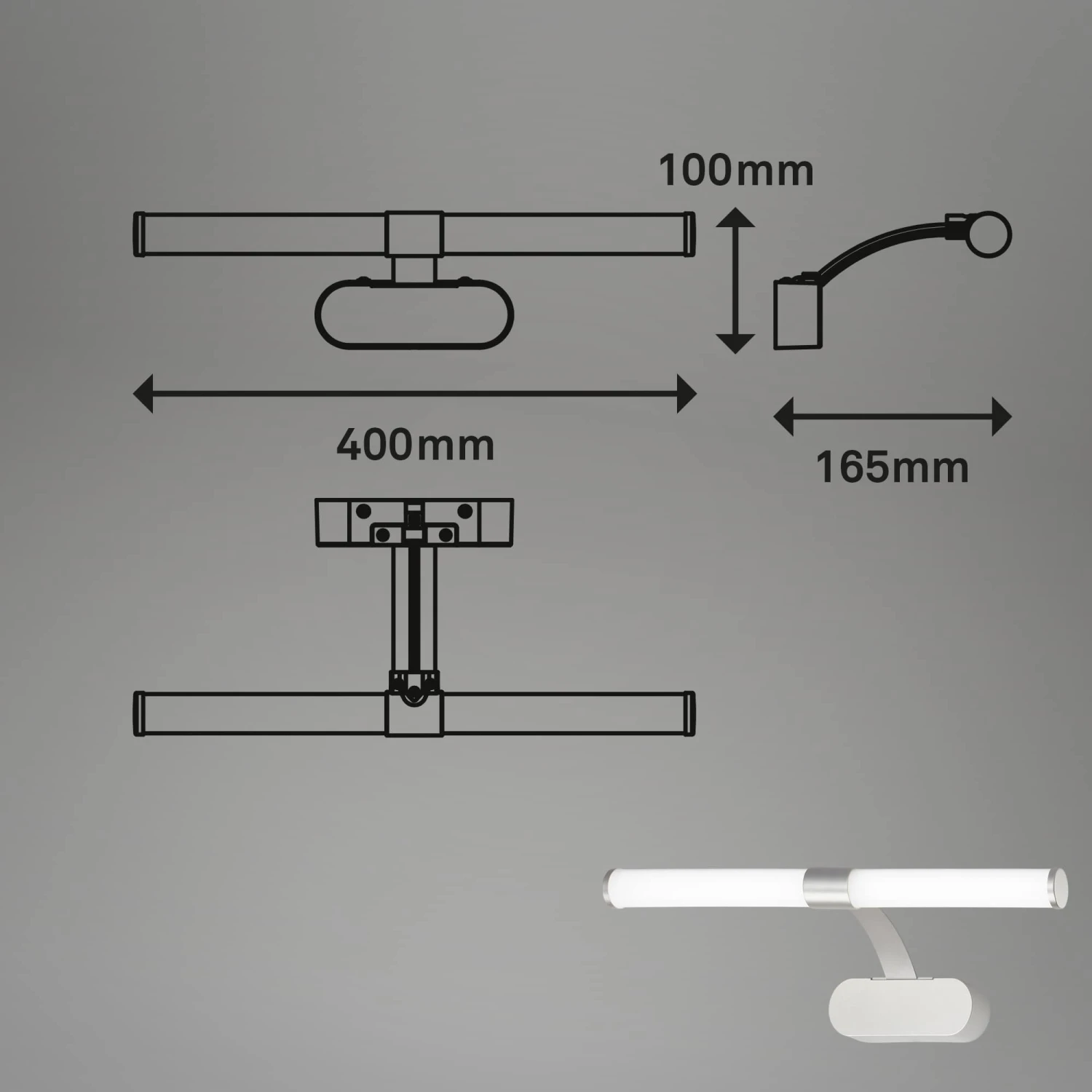 Die LED Spiegelleuchte in Kunststoff / chrom-matt ist eine hervorragende Wahl für das moderne Bad. Die Schranklampe ist attraktiv und stylish. Die LED-Platine mit 6W Leistung und 720 Lumen Helligkeit sorgt für ein helles, neutralweißes Licht, das ideal für eine perfekte Beleuchtung beim Schminken oder Rasieren ist. Ein weiterer großer Vorteil dieser LED Spiegellampe ist ihre lange Lebensdauer von 25.000 Stunden. Außerdem kann sie aufgrund ihrer 2-in-1-Montage sowohl an der Wand als auch auf einem Spiegelschrank montiert werden, was für viele Badezimmer die perfekte Lösung darstellt. Zusätzlich bietet die LED Schrankbeleuchtung mit ihrer IP44 Schutzart ausreichenden Schutz vor Feuchtigkeit und Spritzwasser, was für eine sichere und zuverlässige Verwendung im Badezimmer sorgt. Mit Abmessungen von 400x165x100mm (LxHxB) ist das Schranklicht super geeignet für eine moderne und stylische Beleuchtung.