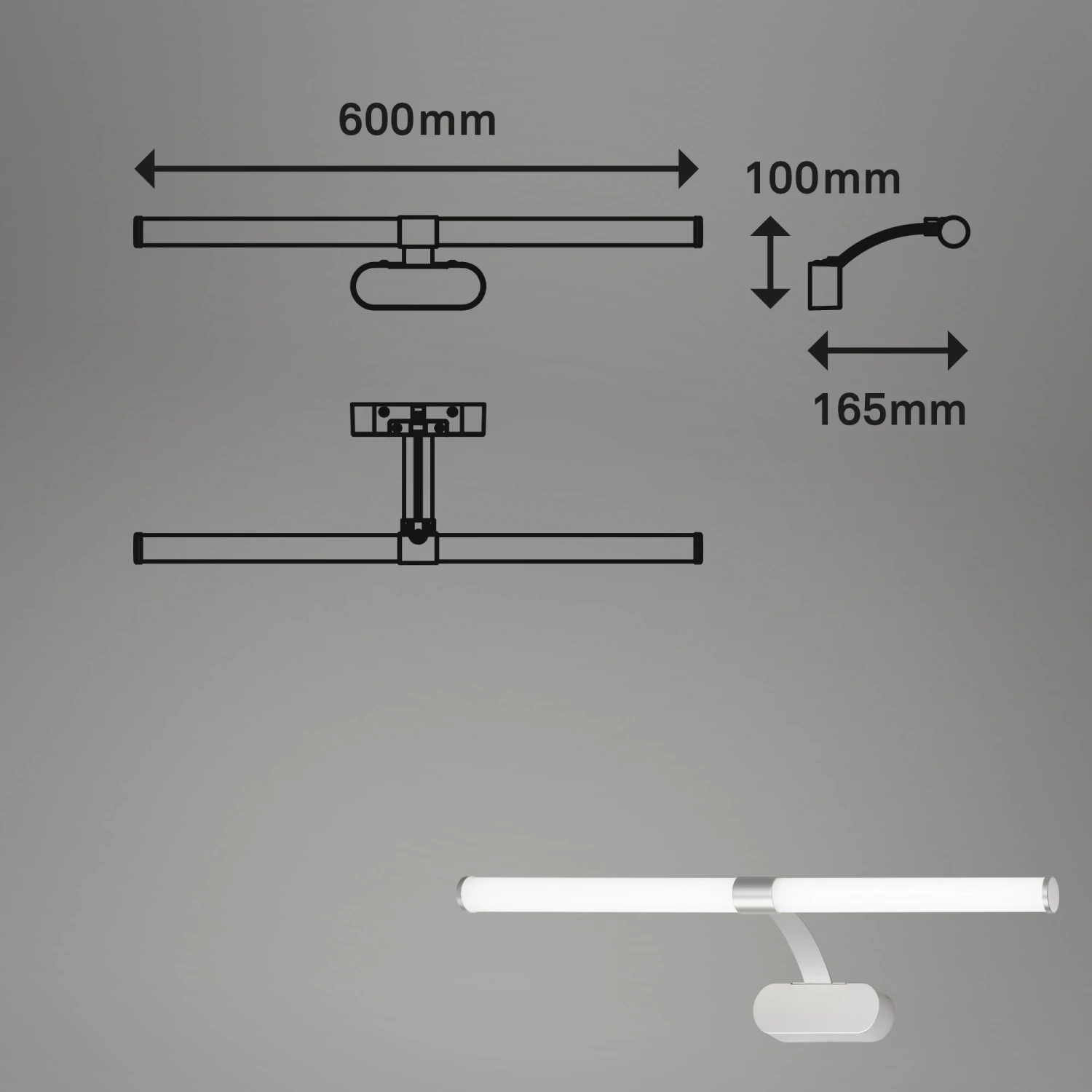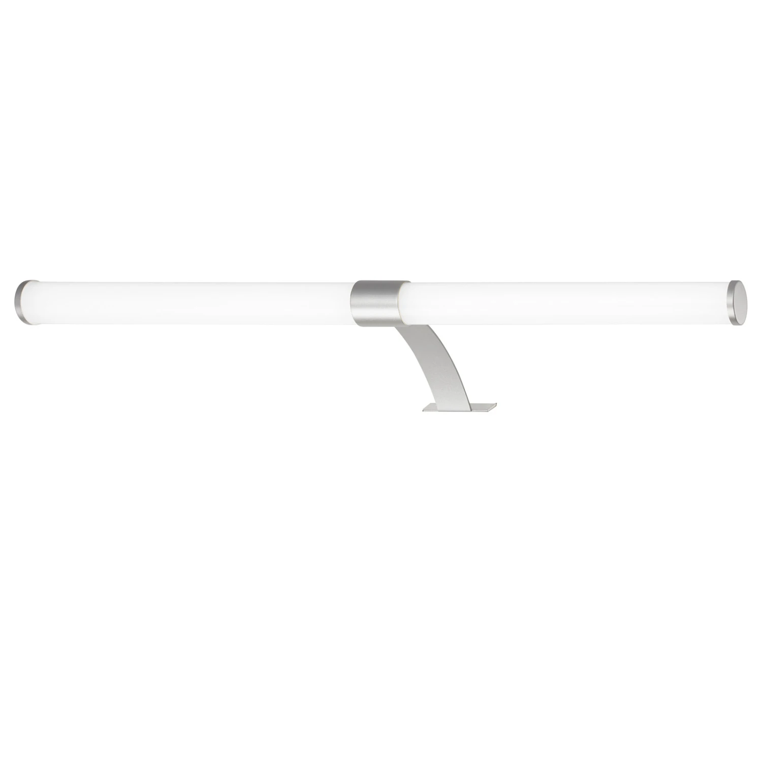 Die LED Spiegelleuchte in Kunststoff/ Chrom-Matt ist eine hervorragende Wahl für das moderne Bad. Die Schranklampe ist attraktiv und stylish. Die LED-Platine mit 8W Leistung und 1040 Lumen Helligkeit sorgt für ein helles, neutralweißes Licht, das ideal für eine perfekte Beleuchtung beim Schminken oder Rasieren ist. Ein weiterer großer Vorteil dieser LED Spiegellampe ist ihre lange Lebensdauer von 25.000 Stunden. Außerdem kann sie aufgrund ihrer 2-in-1-Montage sowohl an der Wand als auch auf einem Spiegelschrank montiert werden, was für viele Badezimmer die perfekte Lösung darstellt. Zusätzlich bietet die LED Schrankbeleuchtung mit ihrer IP44 Schutzart ausreichenden Schutz vor Feuchtigkeit und Spritzwasser, was für eine sichere und zuverlässige Verwendung im Badezimmer sorgt. Mit Abmessungen von 600x168x96mm (LxHxB) ist das Schranklicht super geeignet für eine moderne und stylische Beleuchtung.