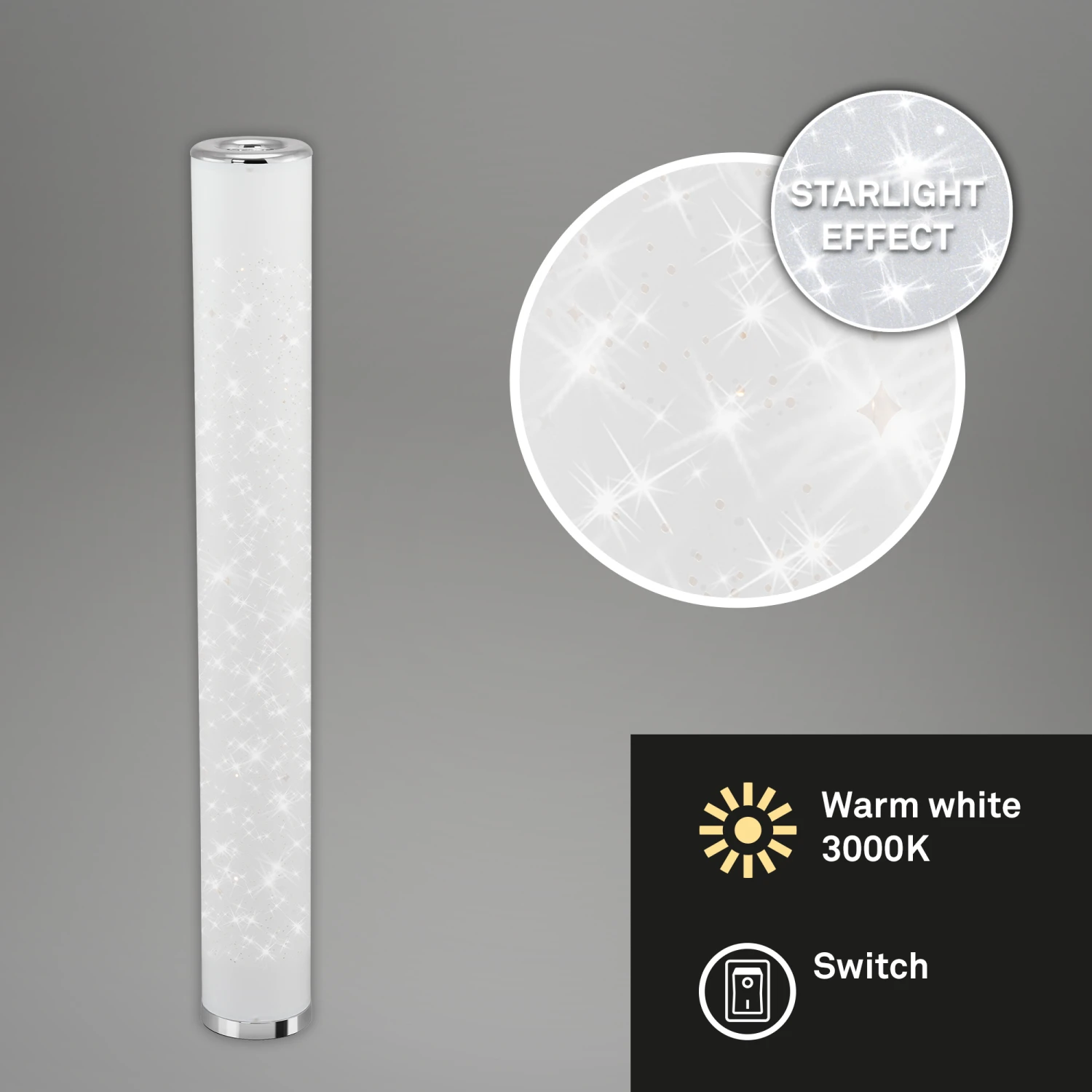 – Moderne LED Stehleuchte mit Sternendekor (viele kleine Leuchtioden die zusätzlich zum Vorschein kommen, keine Projektion) in weiß-chrom, gefertigt aus Kunststoff