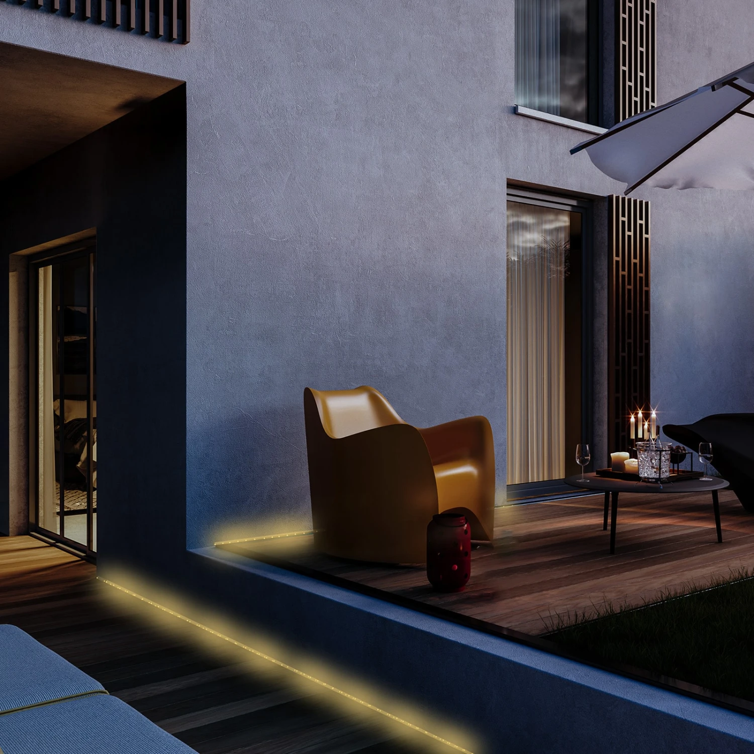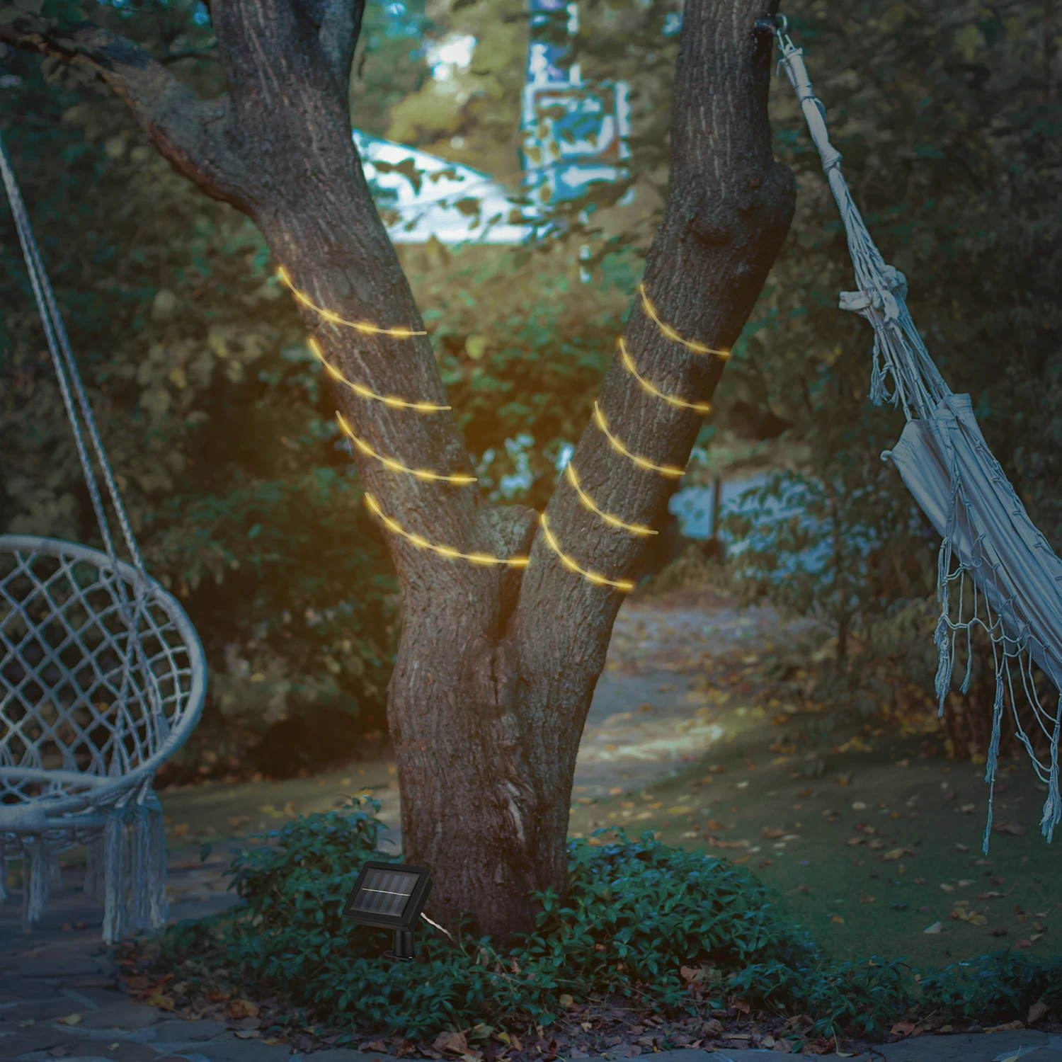 Nachhaltige Energiequelle: Unser 10 Meter langes Solar LED Strip für den Außenbereich nutzt die Kraft der Sonne, um Ihren Außenbereich zu beleuchten. Das integrierte Solarpanel der LED Solarlichterkette Außen spart nicht nur Energiekosten, sondern schont auch die Umwelt. Ist dieses durch die Sonne maximal aufgeladen, haben Sie eine Leuchtdauer von bis zu 8 Stunden. Atmosphärisches Ambiente: Mit einer Farbtemperatur von 3.000K erzeugt dieser LED Streifen ein warmes, gemütliches Licht. Verleihen Sie Ihrem Garten, Ihrer Terrasse oder Ihrem Balkon eine einladende Atmosphäre. Mehr Flexibilität bei der Platzierung: Dank einer großzügigen 2 Meter langen Zuleitung haben Sie die Freiheit, die LED Lichterkette für Außen optimal zu positionieren, ohne auf die Sonneneinstrahlung für das Solarpanel verzichten zu müssen. Individuelle Lichtgestaltung: Mit dem integrierten Schalter können Sie bei diesem LED Band zwischen zwei verschiedenen Lichtmodi wählen