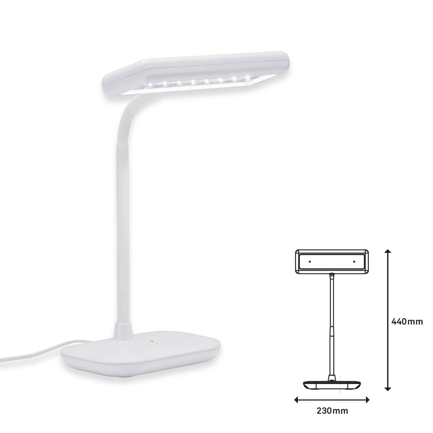 – Mit den Maßen 44x23x12 cm (HxLxB) passt die Schreibtischleuchte funktional auf jeden Tisch oder integriert sich mühelos in ein Regal als Blickfang