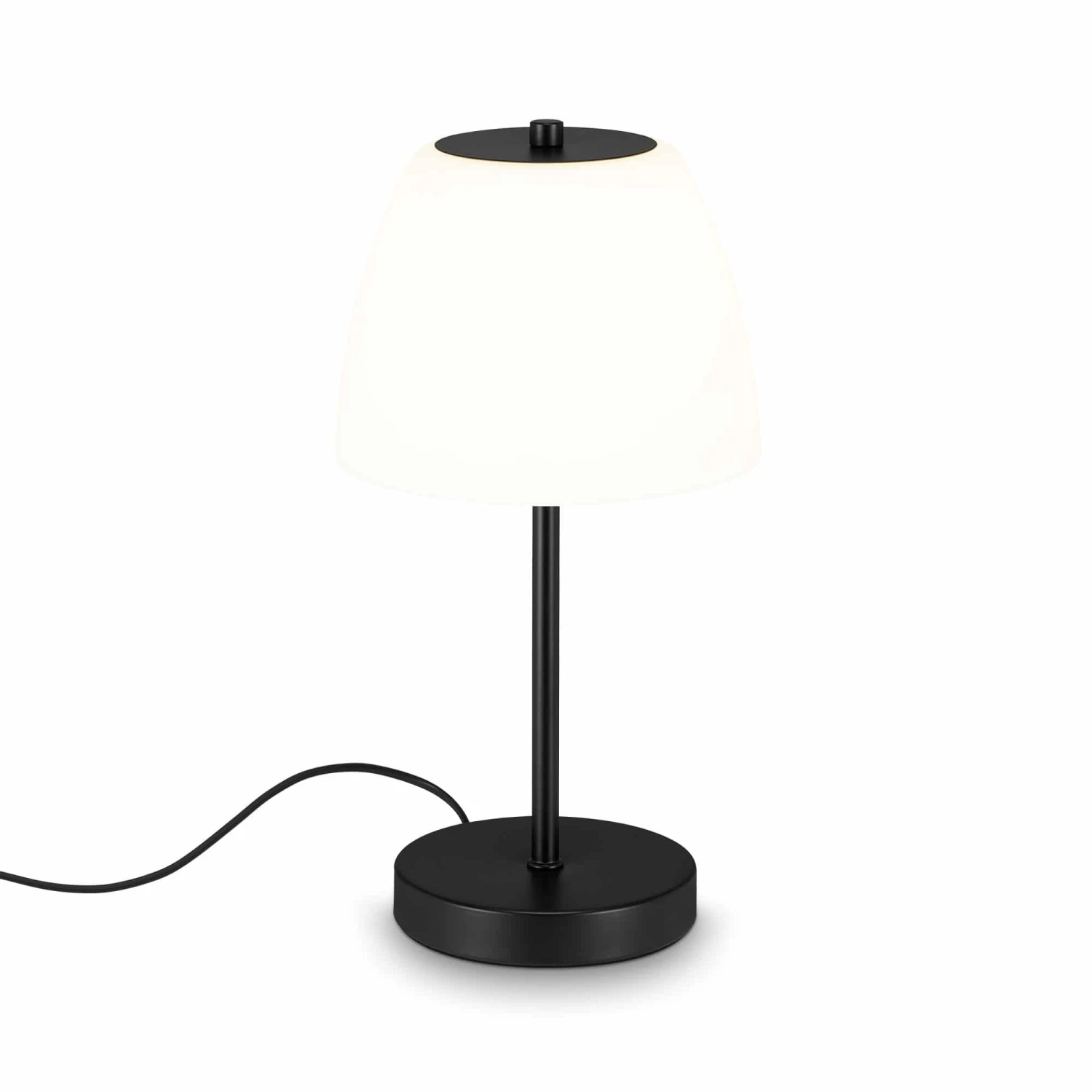 – Moderne LED Tischlampe in schwarz, gefertigt aus Metall und Glas -Die stilvolle, moderne Optik der Tischleuchte hebt sich in Ihren Wohnräumen positiv hervor
