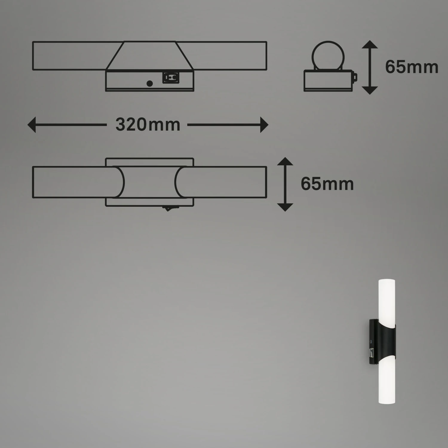Die mattschwarze LED-Spiegelleuchte verfügt über eine IP44-Schutzzertifizierung und ist damit perfekt für Badezimmer und Gästebäder geeignet. Die spritzwassergeschützte Badezimmerleuchte kann an der Wand über oder neben Ihren Spiegel befestigt werden. Die Spiegellampe wird an das 230V Stromnetz angeschlossen und ist über einen integrierten Schalter steuerbar (kein Stecker). Das milchige Kunststoffgehäuse dient als Diffusor, der die Blendung verringert und die neutralweiße Farbtemperatur von 4000 Kelvin mit einer Helligkeit von 700 Lumen verbreitet. Sie eignet sich hervorragend beim Auftragen von Make-up oder beim Rasieren. Außerdem kann die LED-Wandleuchte mit Schalter als Bilderleuchte verwendet werden. Sie ist 320x65x68 mm groß (BxTxH).