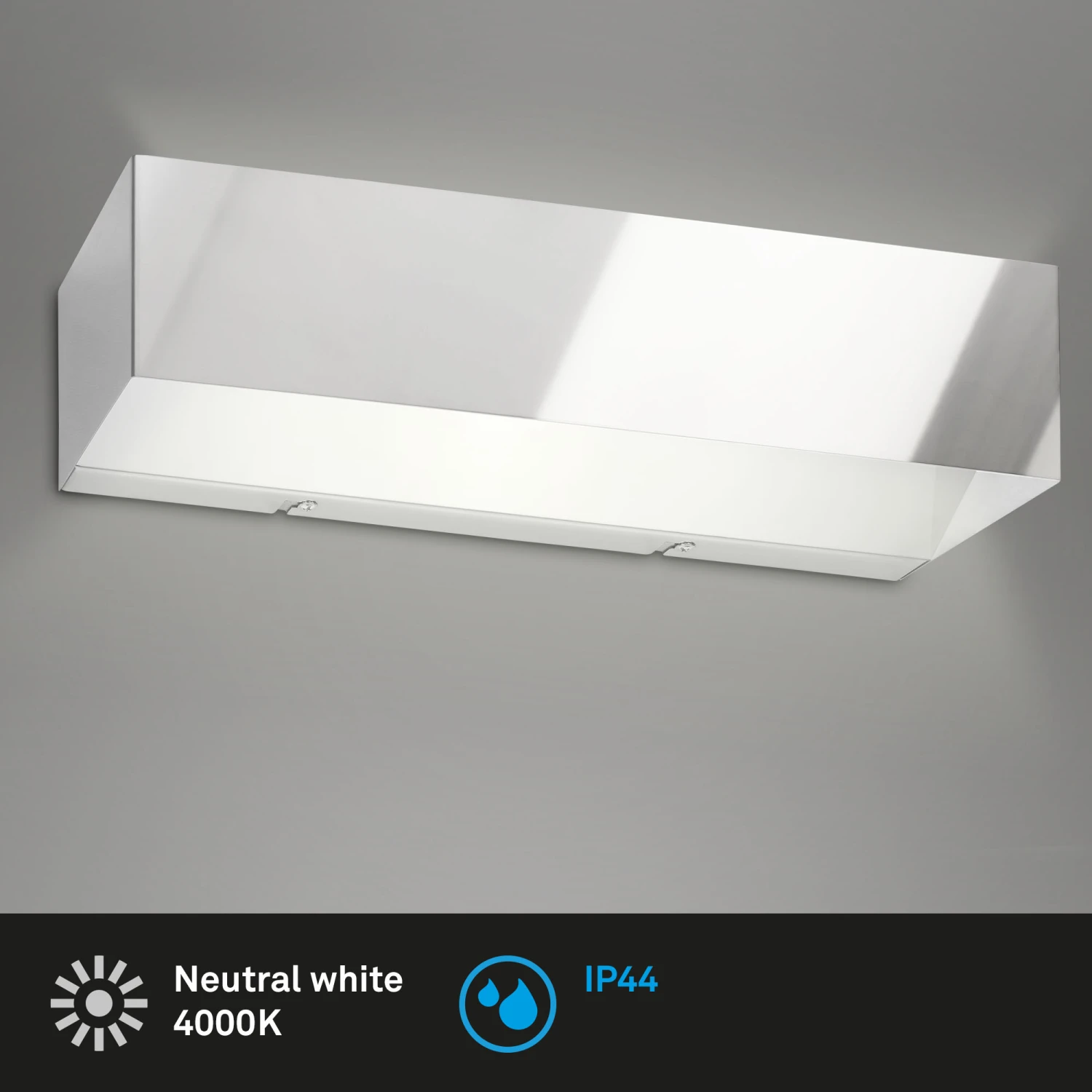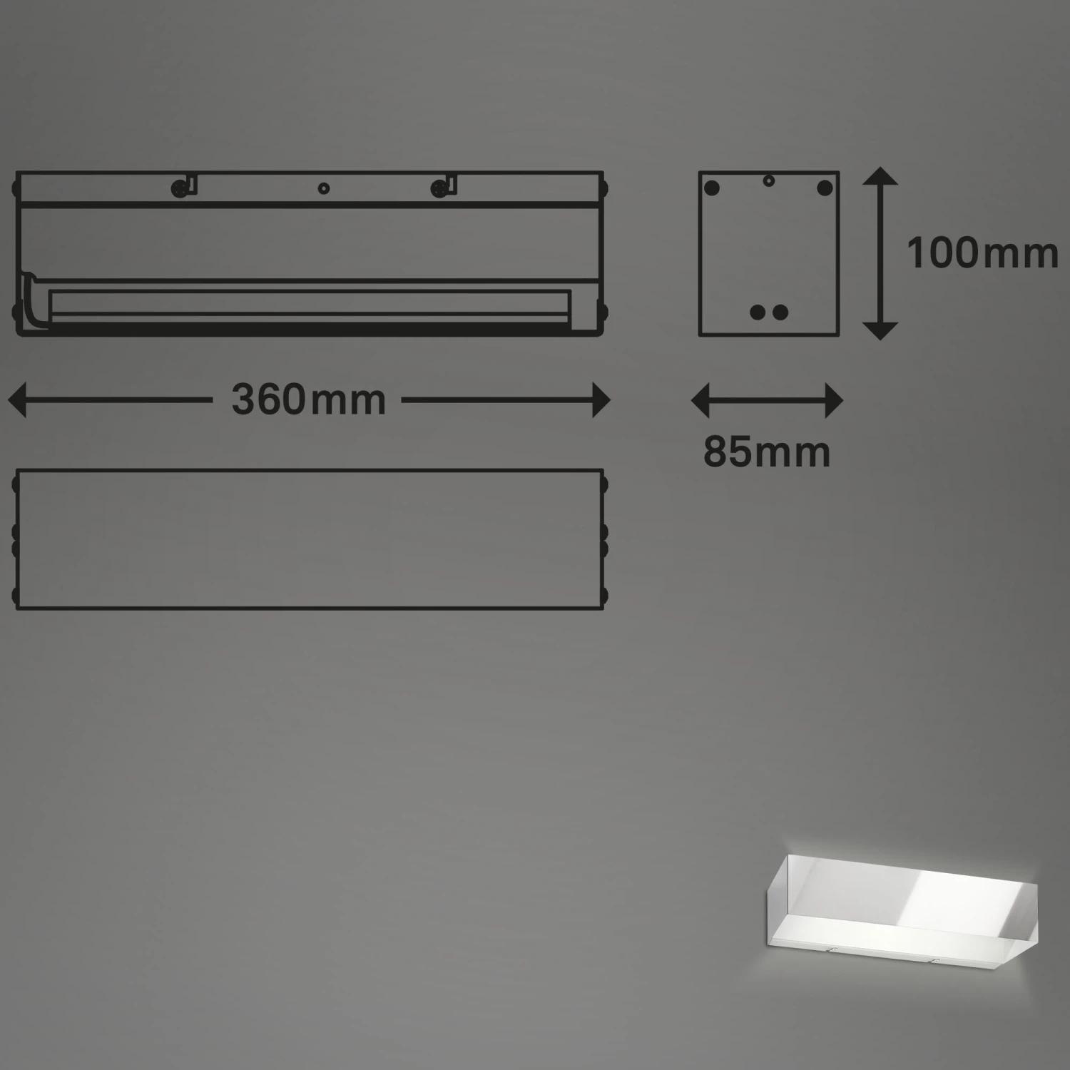Das attraktive Up & Downlight der LED Badleuchte, dass eine schöne Lichtverteilung und eine indirekte Beleuchtung bietet, ist das Highlight der Leuchte. Der Spritzwasserschutz ist durch die IP44-Schutzzertifizierung gewährleistet. Damit ist die LED Wandlampe perfekt für den Einsatz als Feuchtraumleuchte in Badezimmer und Keller geeignet. Diese LED Wanlampe Innen kann auch als Wohnzimmerleuchte oder Flurbeleuchtung in typischen Wohnräumen eingesetzt werden. Die Innenwandleuchte hat eine Lichtfarbe von 4000 Kelvin und strahlt damit bei 8 Watt ein deutliches, neutrales Licht ab. Die Wandleuchte für das Badezimmer hat die Maße 360x100x85mm (LxBxH) und ist in Chromfarben erhältlich.