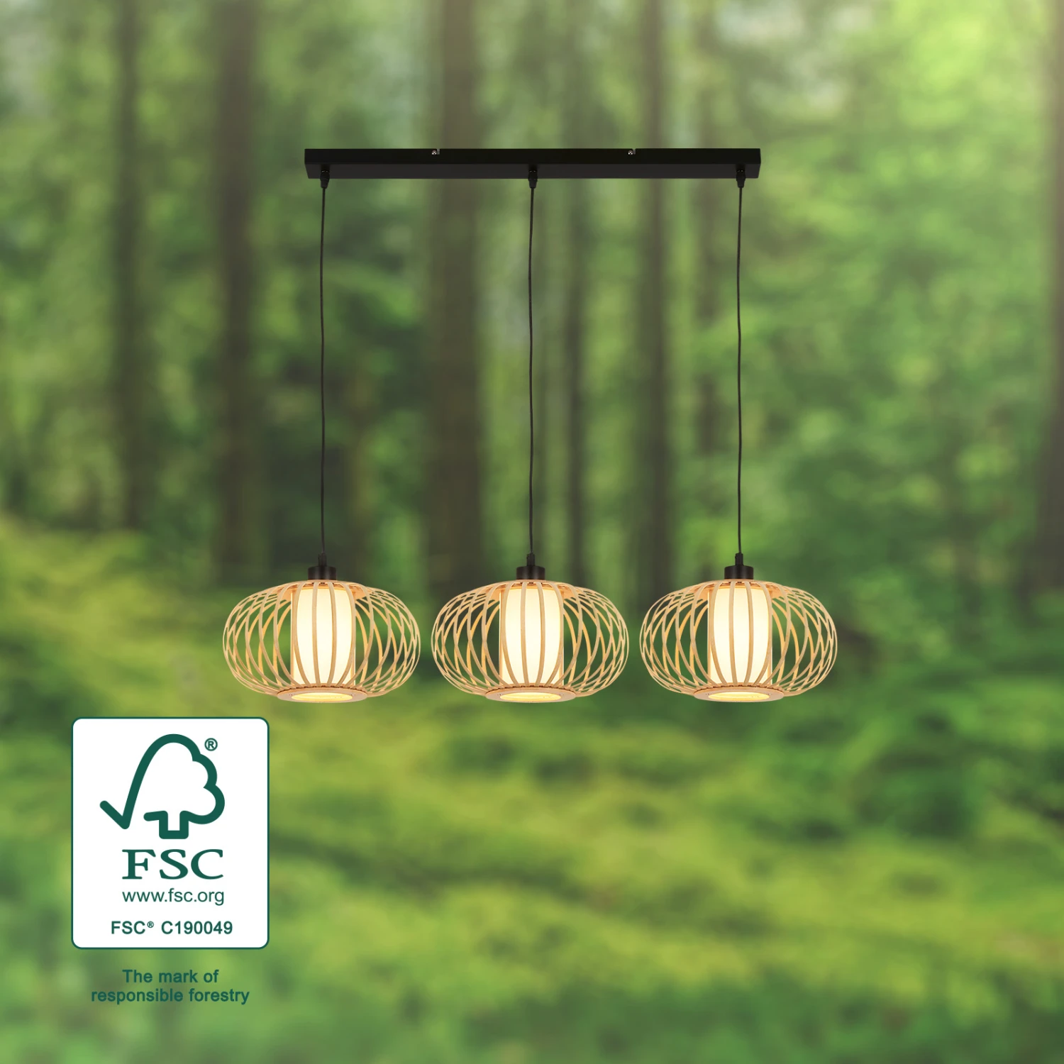 Pendelleuchte, 120 Cm, 3x E27, Max. 10W, Holzfarben
