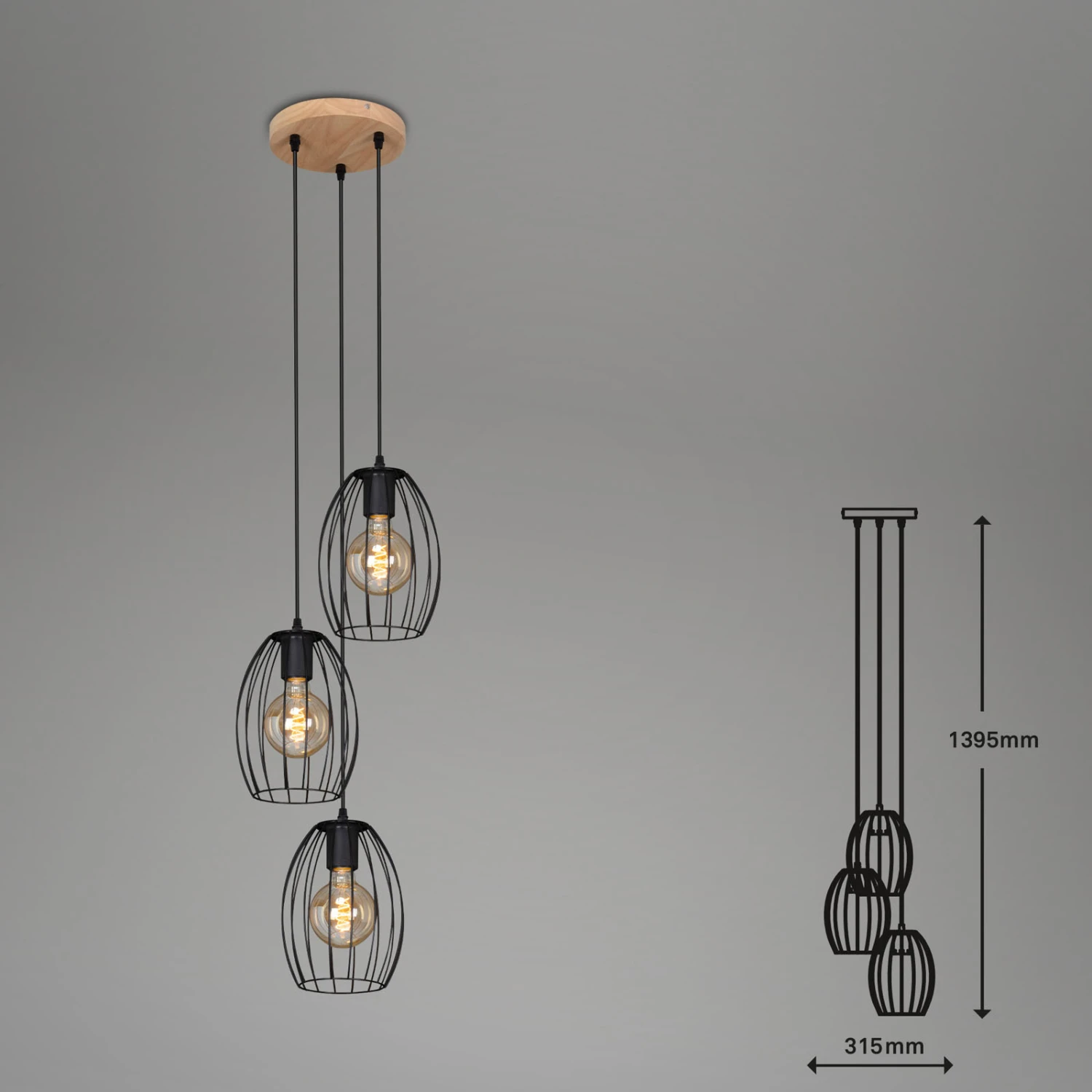Diese Deckenleuchte mit 3 gebogenen Metall-Lampenschirmen und matt-schwarzer Lackierung ist als Wohnzimmerlampe und Esszimmerlampe ein Hingucker in Ihrem Wohnbereich. Die Wohnzimmerleuchte verfügt über 3 E27 Fassungen. Die maximale Wattage für die Lampe beträgt 60 Watt. Lichtfarbe und Helligkeit können Sie hierbei selbst bestimmen