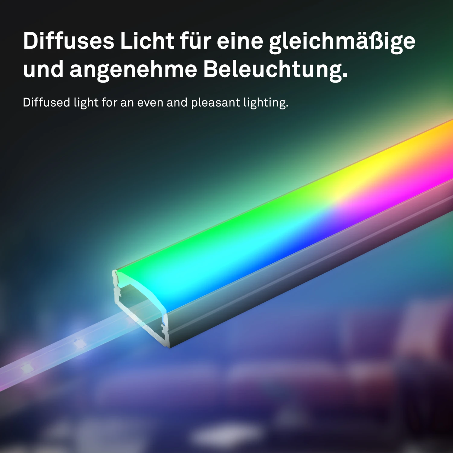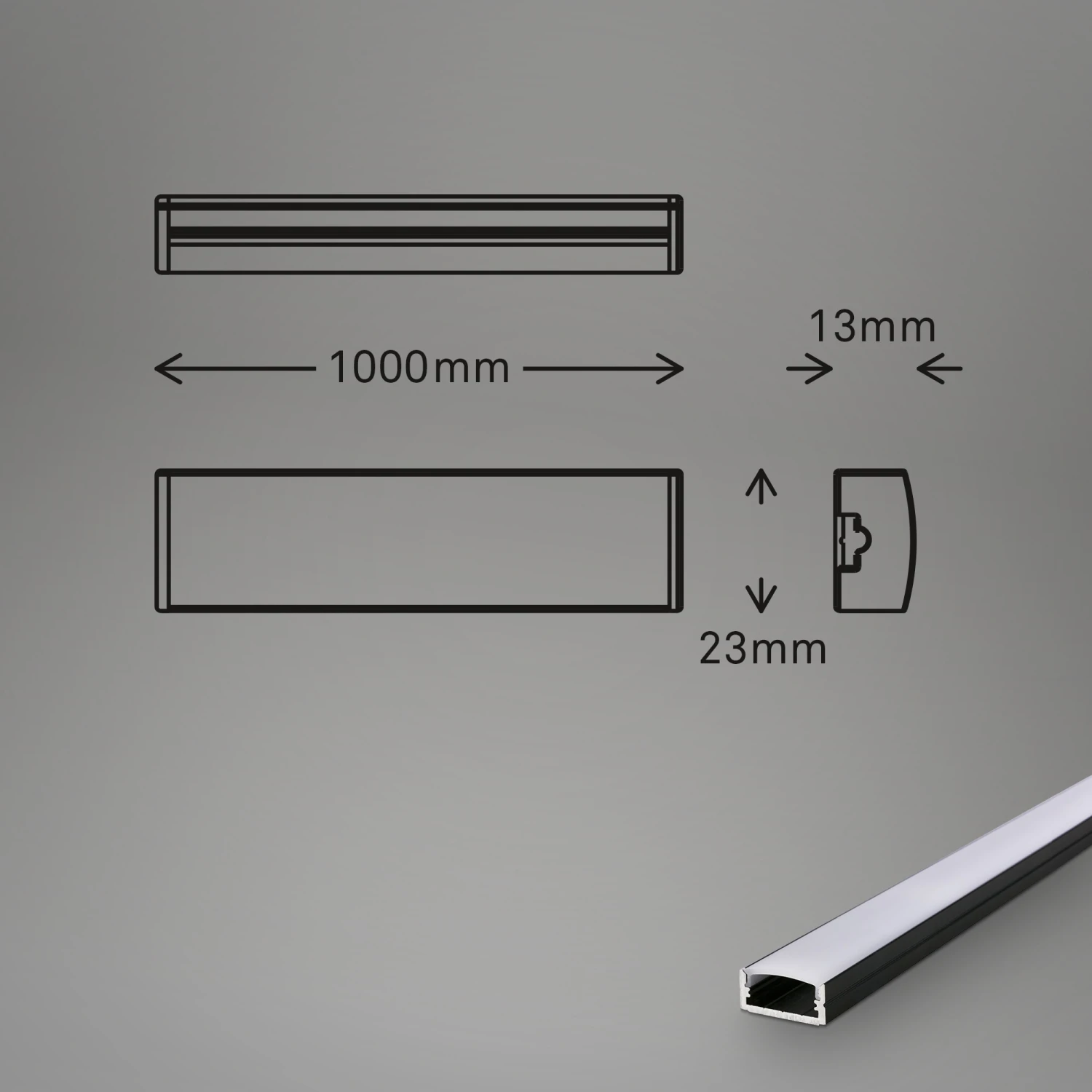Mit einer Länge von 2×1 Meter, einer Breite von 23mm und einer Höhe von 13mm ist diese Profilschiene kompakt und dennoch optimal, um LED Stripes sicher und stilvoll zu beherbergen. Die mitgelieferte Diffusorabdeckung sorgt für eine sanfte Streuung des Lichts, was die Blendung verringert und für ein angenehmes Lichtambiente sorgt.