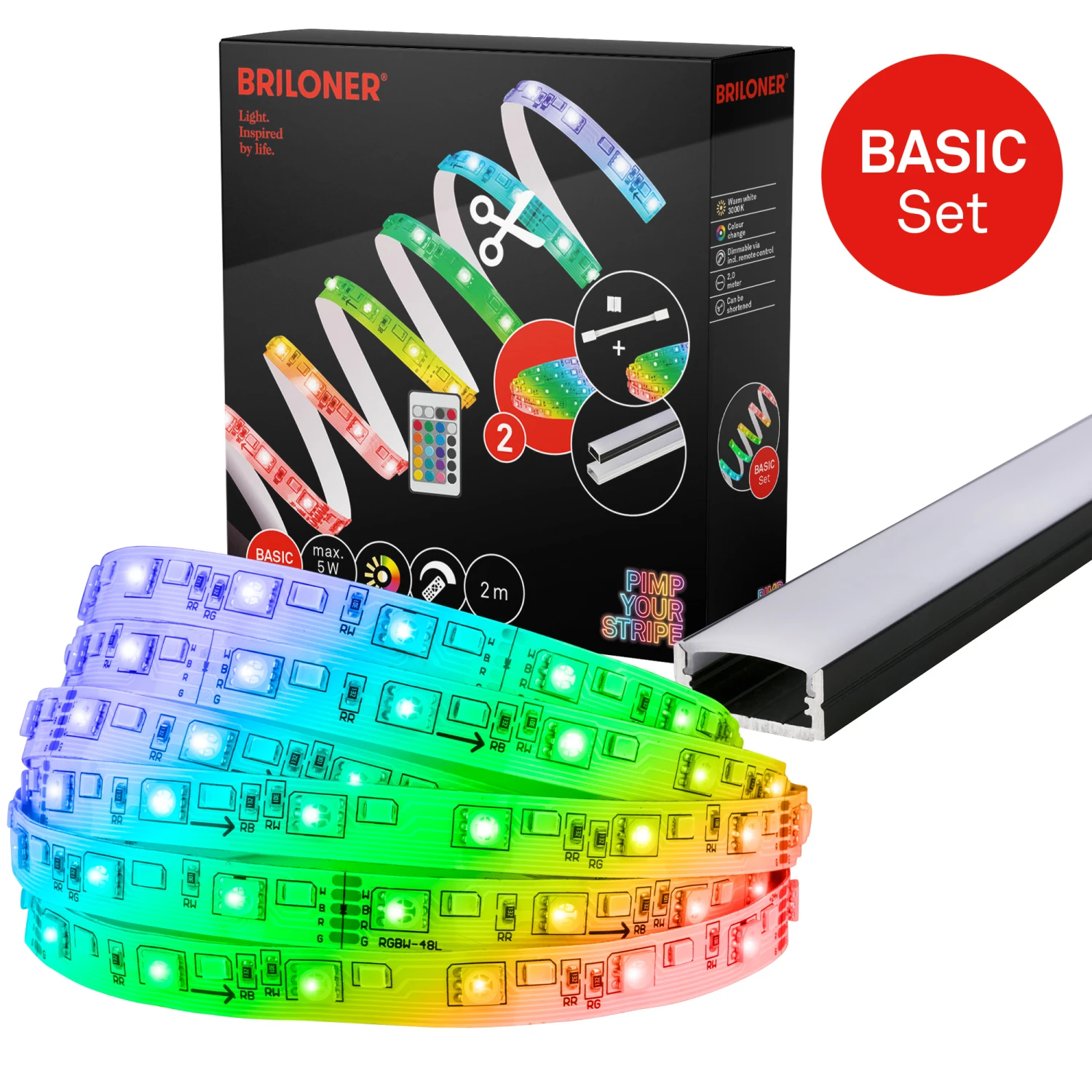 Pimp Your Stripe LED Strip 2m, RGBW Mit FB + Alu-Profil Schwarz