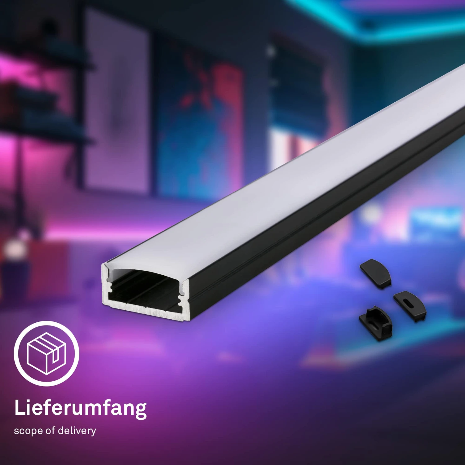 Die schwarz Profilschiene aus Aluminium bietet eine elegante und funktionale Basis für Ihre LED Beleuchtungslösungen und erweitert das Pimp Your Stripe Konzept. Sie kombiniert die Robustheit und Leichtigkeit von Aluminium und Kunststoff und kommt in einem ansprechenden schwarz-weißen Design, das sich in jede Einrichtung harmonisch einfügt.