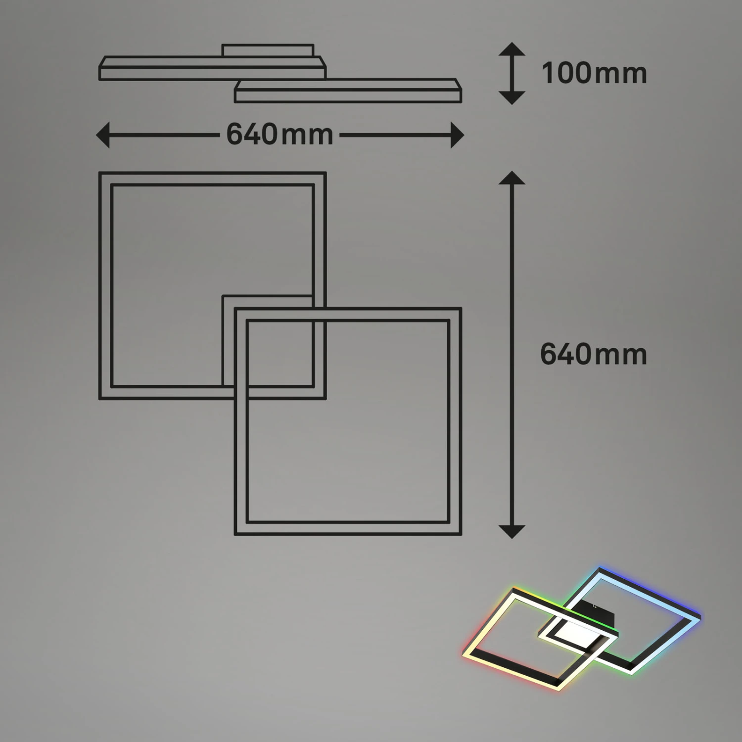 Die 2-flammige RGB-Kinderzimmerleuchte zeichnet sich durch ihre hochwertige Optik und mehrere Funktionen aus. Die Hintergrundbeleuchtung des LED-Rahmens projiziert leuchtende RGB-Farben an die Wand oder Decke. Die Farbtemperatur des Frontlichts kann verändert werden, da die Wohnraumlampe über eine CCT-Funktion verfügt. Dies betrifft sowohl das Mittellicht als auch den LED Rahmen. Sie können das Tempo der RGB-Lichteffekte steuern oder die Helligkeit der LED-Wohnzimmerbeleuchtung nach Bedarf anpassen. Die LEDs können in 3 Arten angeschaltet werden: RGB Backlight einzeln, CCT Frontlight mit Mittellicht einzeln, beides gemeinsam. Die Fernbedienung macht es einfach, alles zu steuern. Wählen Sie aus einer Vielzahl von lebendigen Farbwechseln und Lichteffekten sowie einem Farbtemperaturbereich von warmweiß bis kaltweiß (2700K-6500K). Die Nachtlichtfunktion dimmt das Licht sanft herab und lässt die LED Wandleuchte in einem gemütlichen, warmweißen Lichtton leuchten. Ein 30 Minuten Timer schaltet das Licht der LED Wohnzimmerlampe automatisch aus. Die zuletzt eingestellten Parameter werden durch eine Memoryfunktion automatisch gespeichert und beim nächsten Einschalten direkt wieder angewählt. 42 Watt bei 4700 Lumen erzeugen viel Helligkeit. Mit den Maßen 595x595x105 (LxBxH) passt die Lampe perfekt in jedes Zuhause. Die Produktfarbe ist Schwarz.