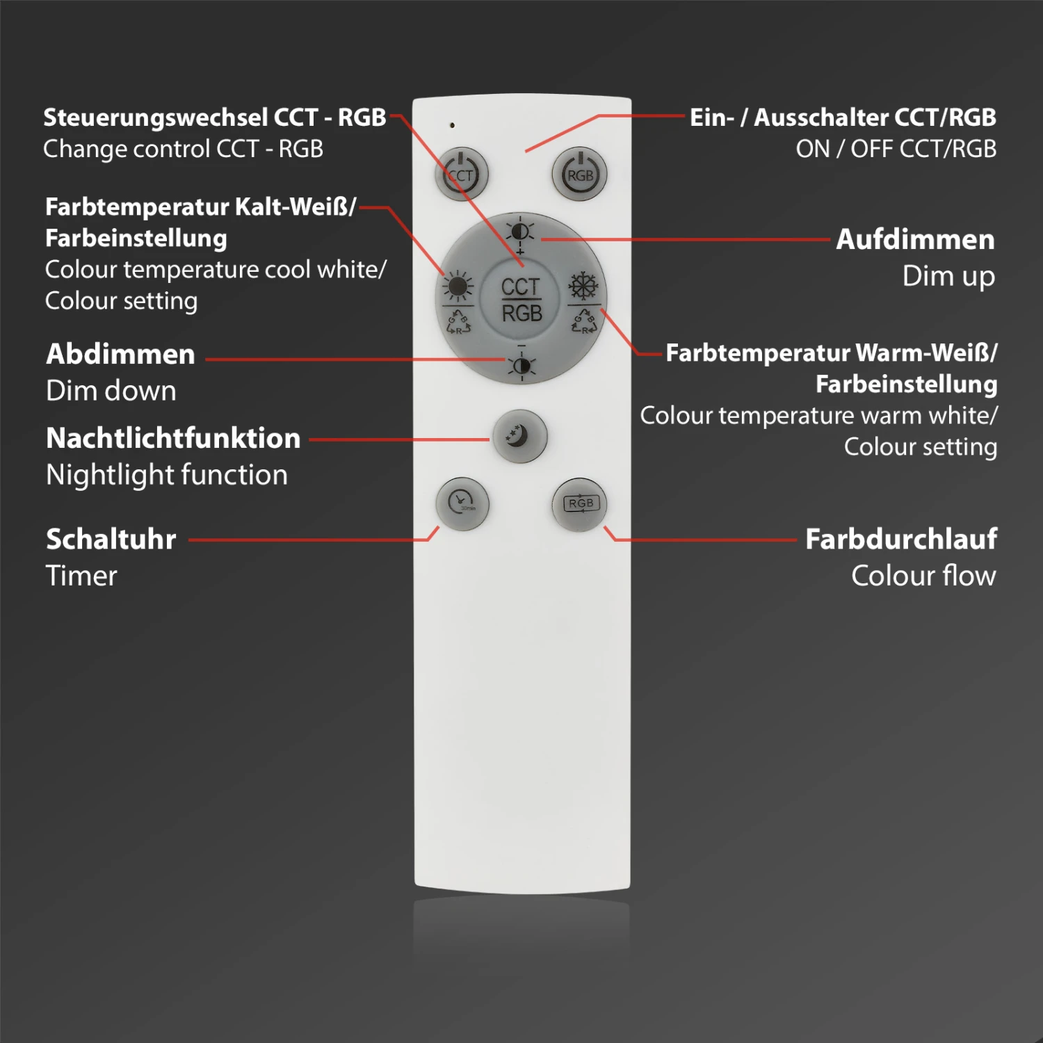 | Funktionen | CCT, Fernbedienung, RGB |
