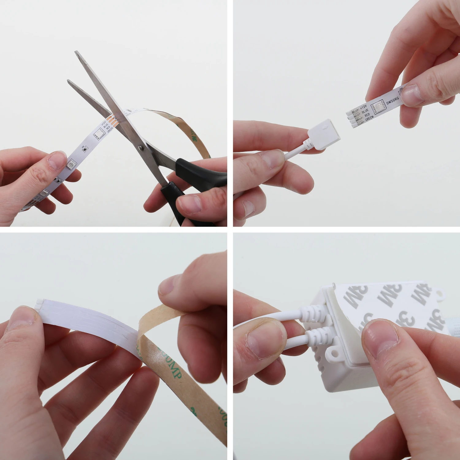 – Durch die mitgelieferte Fernbedienung (infrarot), kann das LED Band gedimmt und die Farbe bzw. ein Farbwechsel/Farbstopp eingestellt werden.