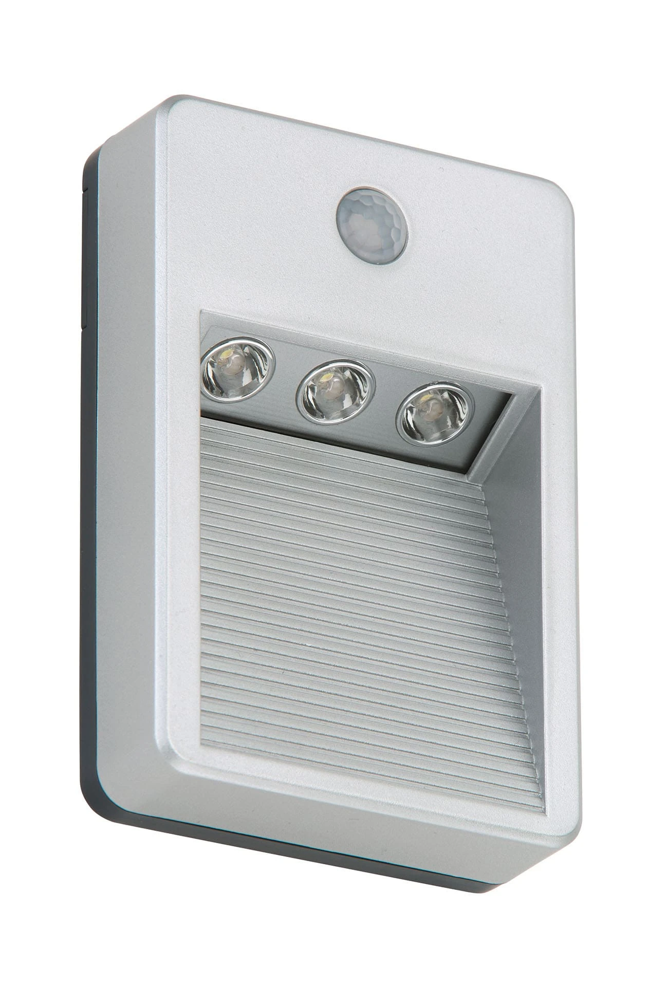 LED Aussenleuchte „LERO Outdoor“ Kunststoff / titan-silberfarbig inkl. 3 x LED 0,06W 5lm 6.500K nicht dimmbar, inkl. Sensor, Leuchtdauer 45 Sekunden, Erfassungsbereich 3,0m, Erfassungswinkel 80°-100°, inkl. 3 x AAA Batterie, inkl. Befestigungsmaterial IP54 31x85x126mm (LxBxH)