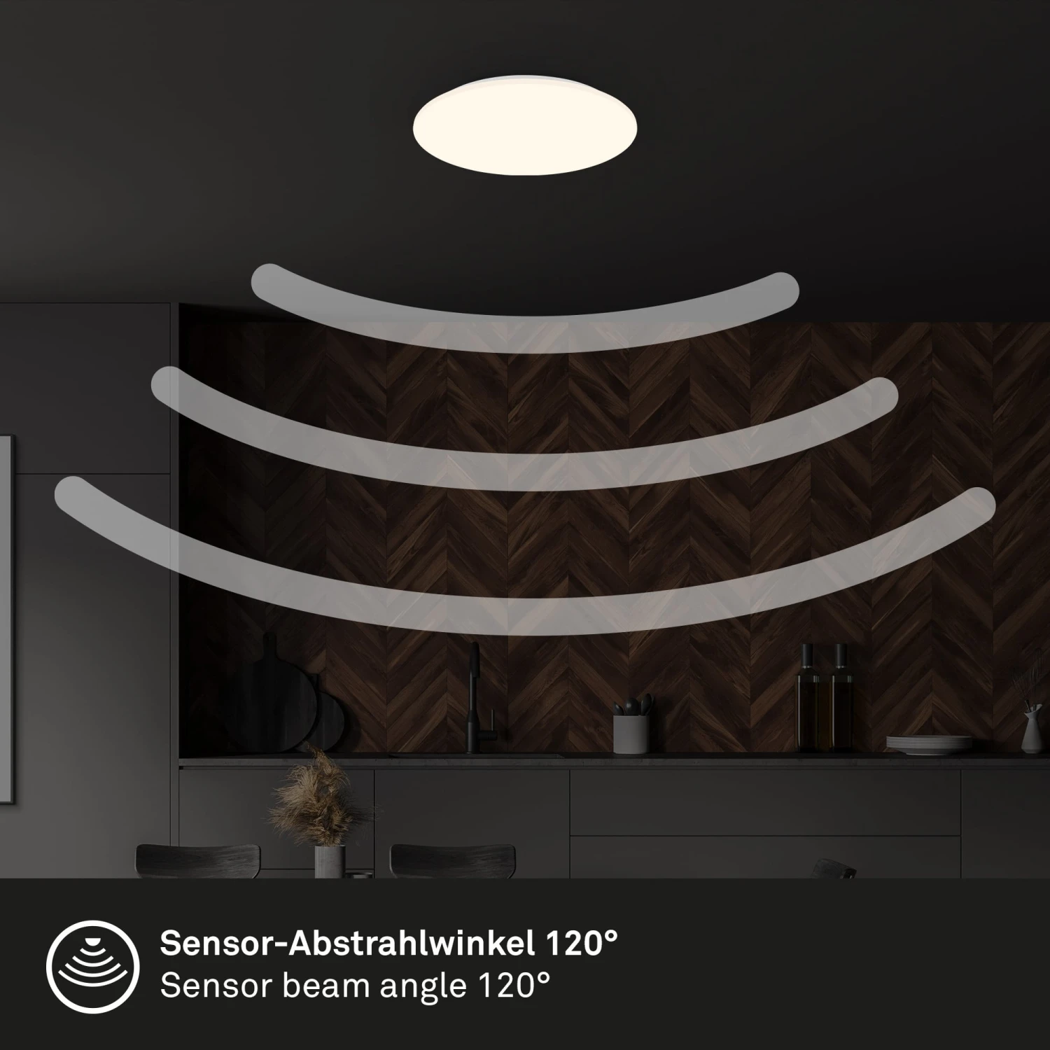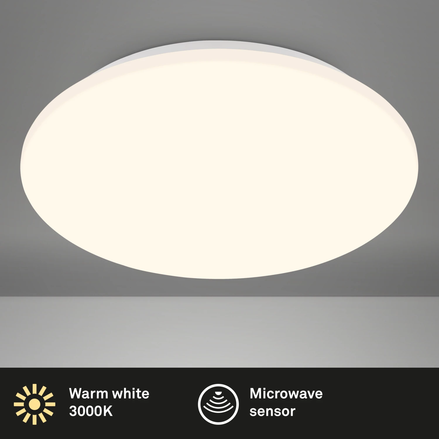 Erleben Sie Innovation und Helligkeit mit unserer LED Wohnzimmerlampe, die mit einem Mikrowellensensor ausgestattet ist. Dieser intelligente Sensor erkennt Bewegungen in einem Radius von 4 Metern und schaltet das Licht dann automatisch für 30 Sekunden ein. Unsere Deckenleuchte mit Bewegungssensor ist äußerst vielseitig einsetzbar und passt perfekt in verschiedene Räume. Ob im Keller, im Jugendzimmer oder als stilvoller Deckenstrahler in Küche, Wohnzimmer oder Esszimmer ? sie überzeugt in jeder Umgebung. Diese LED Wohnzimmerlampe kombiniert Helligkeit mit Eleganz. Mit einer Leistung von 24W und einer Leuchtkraft von 2600 Lumen taucht die LED Deckenlampe jeden Raum in ein warmweißes Licht mit einer angenehmen Farbtemperatur von 3.000 Kelvin. Dank ihres Designs mit Abmessungen von 350x60mm (Durchmesser x Höhe) fügt sich diese Esszimmerlampe nahtlos in jede Raumsituation ein.
