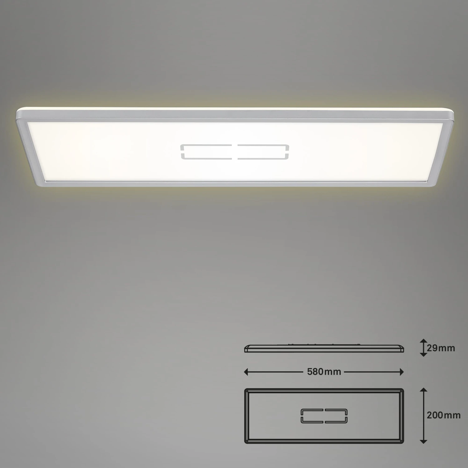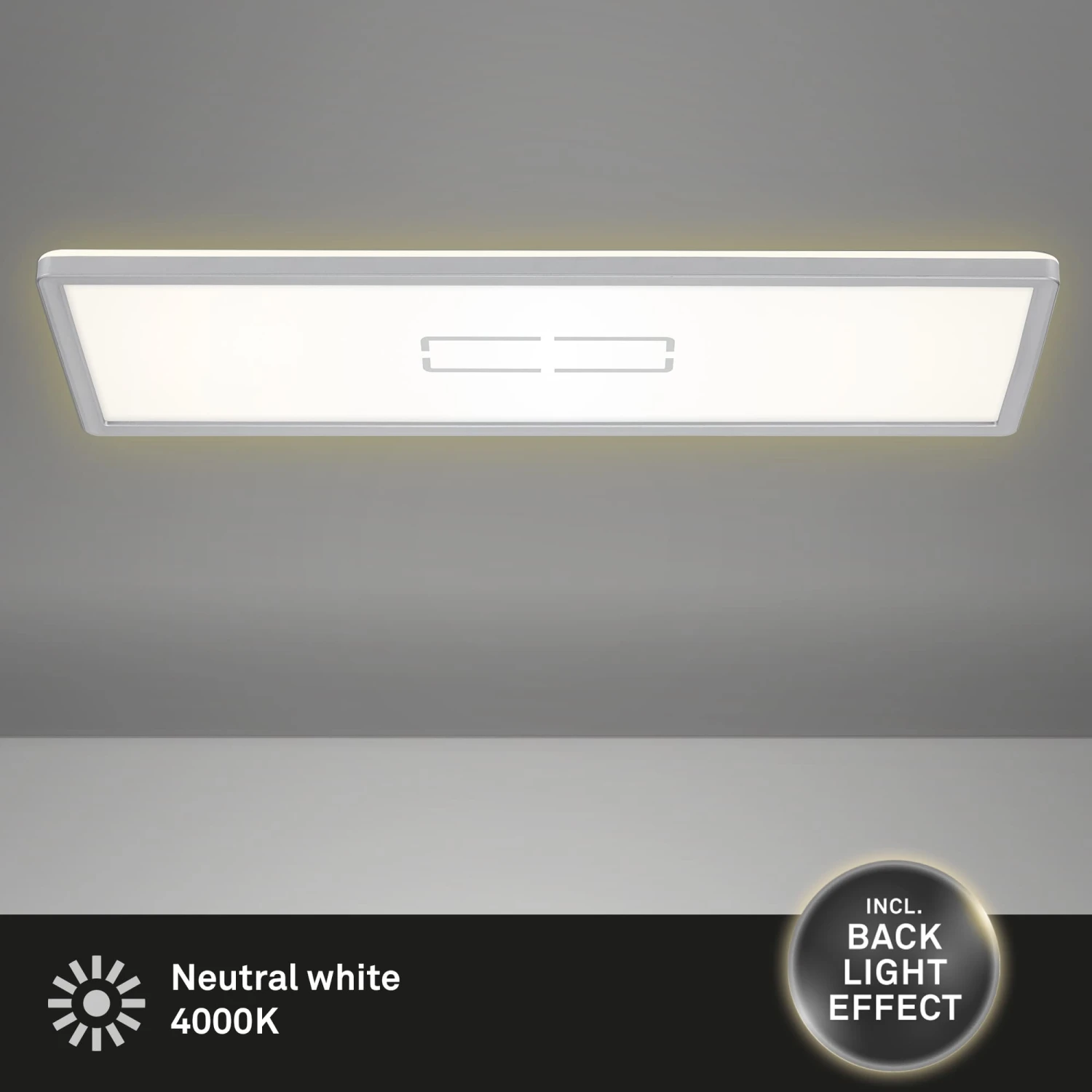 FREE Ultraflache LED Deckenleuchte mit Hintergrundbeleuchtungseffekt Kunststoff / weiß-silber inkl. 1 x LED Platine 22W 2.700lm 4.000K Lebensdauer 25.000h, Ra>=80 nicht dimmbar, inkl. indirektem Hintergrundbeleuchtungseffekt IP20 580x200x29mm (LxBxH)