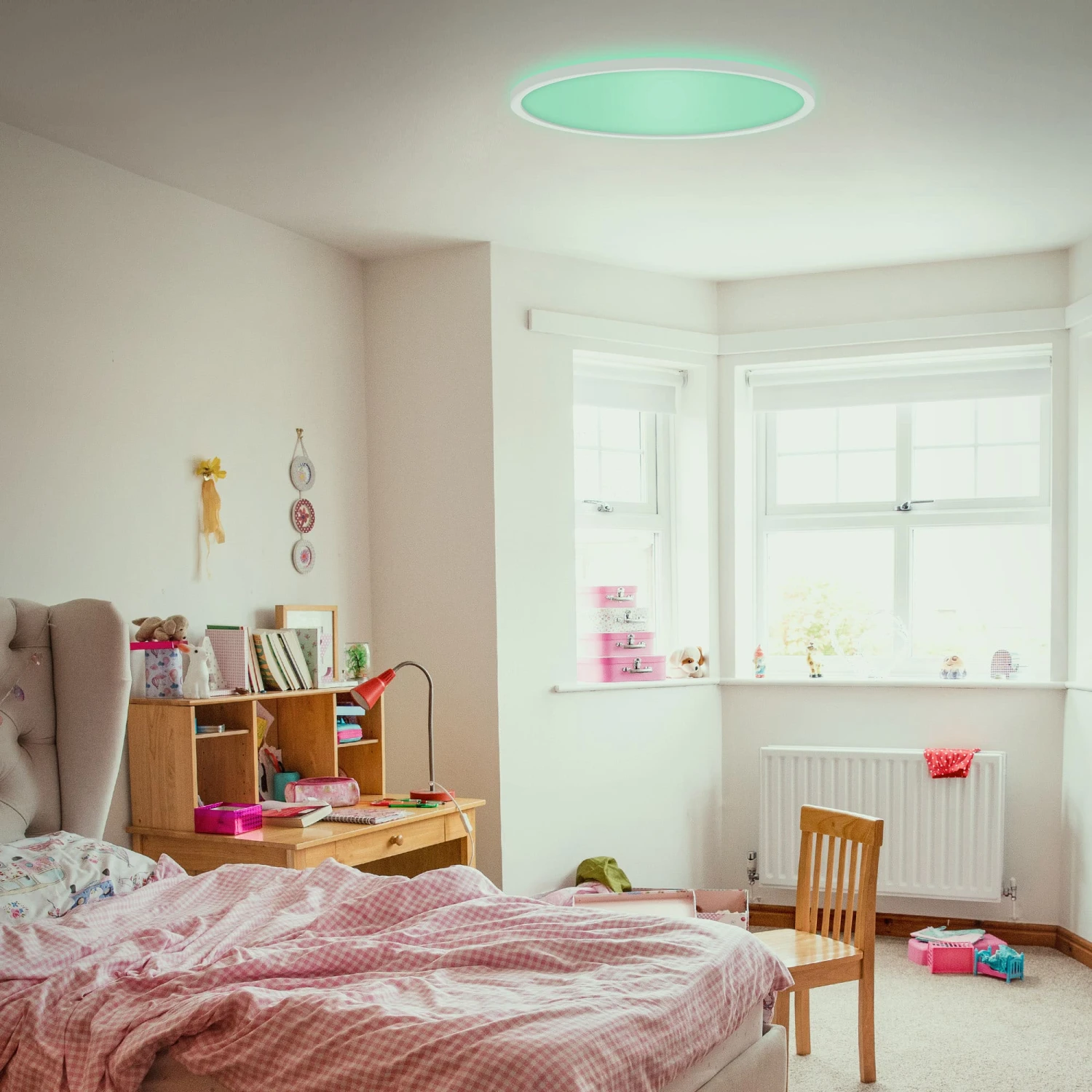 – Dieses moderne, ultraflache LED Panel in weiß, gefertigt aus Kunststoff, ist durch das schlichte und schlanke Design und die vielen Funktionen vielseitig einsetzbar, z.B. als Wohnzimmerlampe, Schlafzimmerlampe oder Kinderzimmerlampe