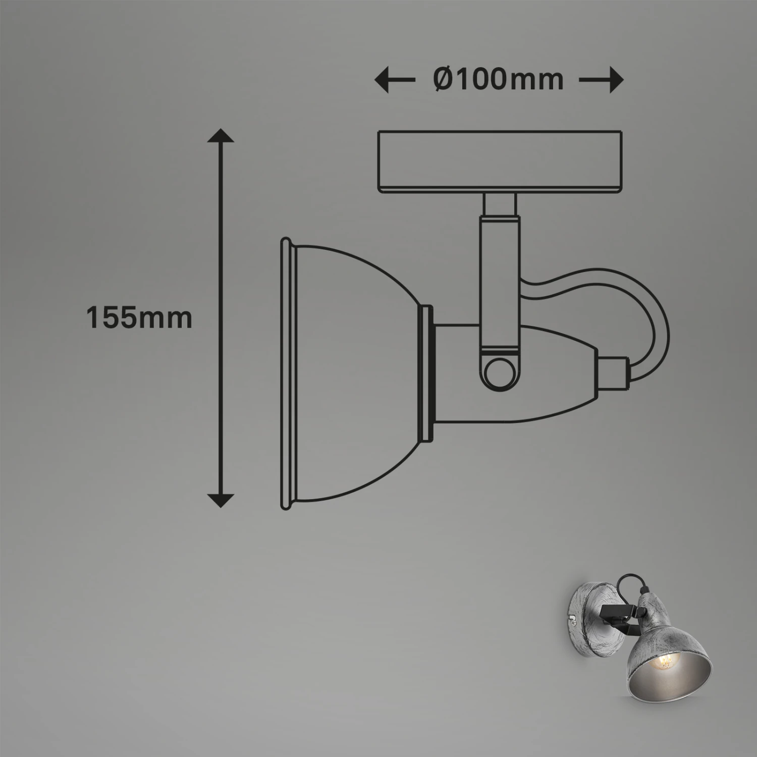 – und drehbare Wandspot hat die Maße 155×100 mm und eignet sich hervorragend als Arbeitslampe in Werkstatt, Flurleuchte und Leseleuchte oder Bettleuchte im Schlafzimmer. Ein Leuchtmittel ist nicht enthalten