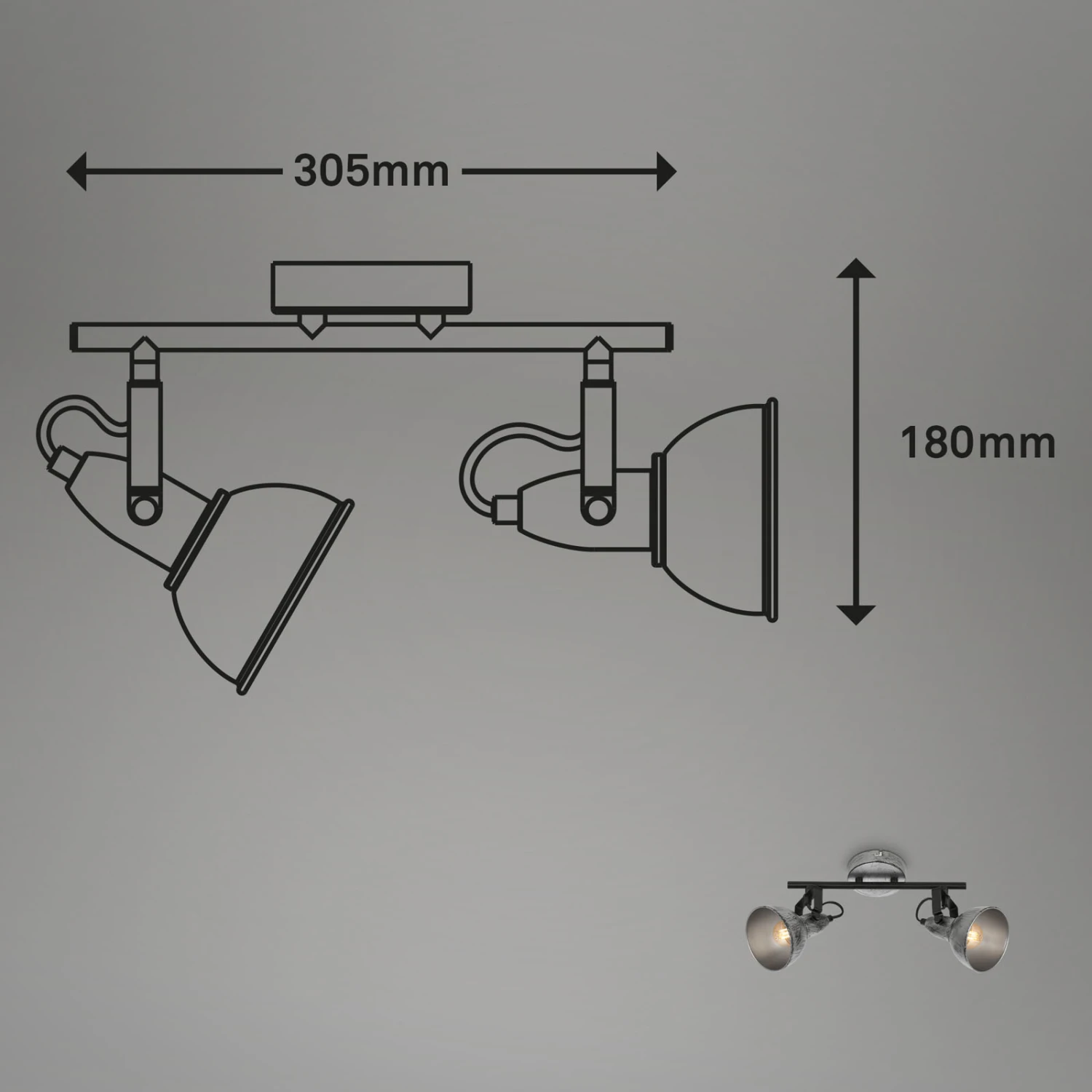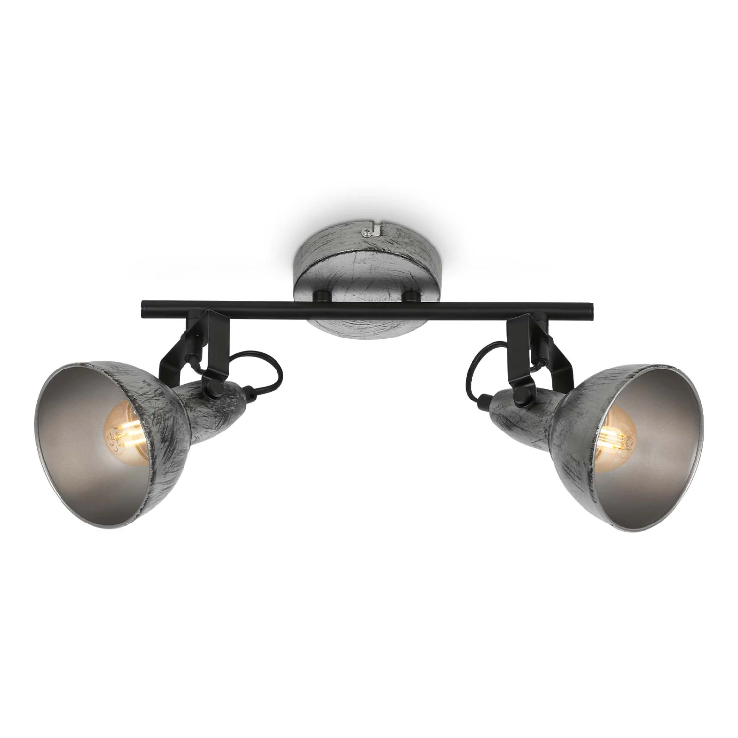 Die individuelle Schwenkbarkeit der E14 Fassungen, sowie die ansprechende Farbe in einem Antik-Silber (Silver Crafted) ist das Markenzeichen dieser Deckenlampe. Durch die Verstellbarkeit der rustikalen Lampenschirme können Sie die Beleuchtung in Ihrem Wohnbereich beliebig gestalten. Die E14-Fassung des Strahlers nimmt Glühbirnen mit bis zu 40 Watt auf. Für ein optisch stimmiges Gesamtbild empfehlen sich Retro-Leuchtmittel. Der antik-silberne, schwenk