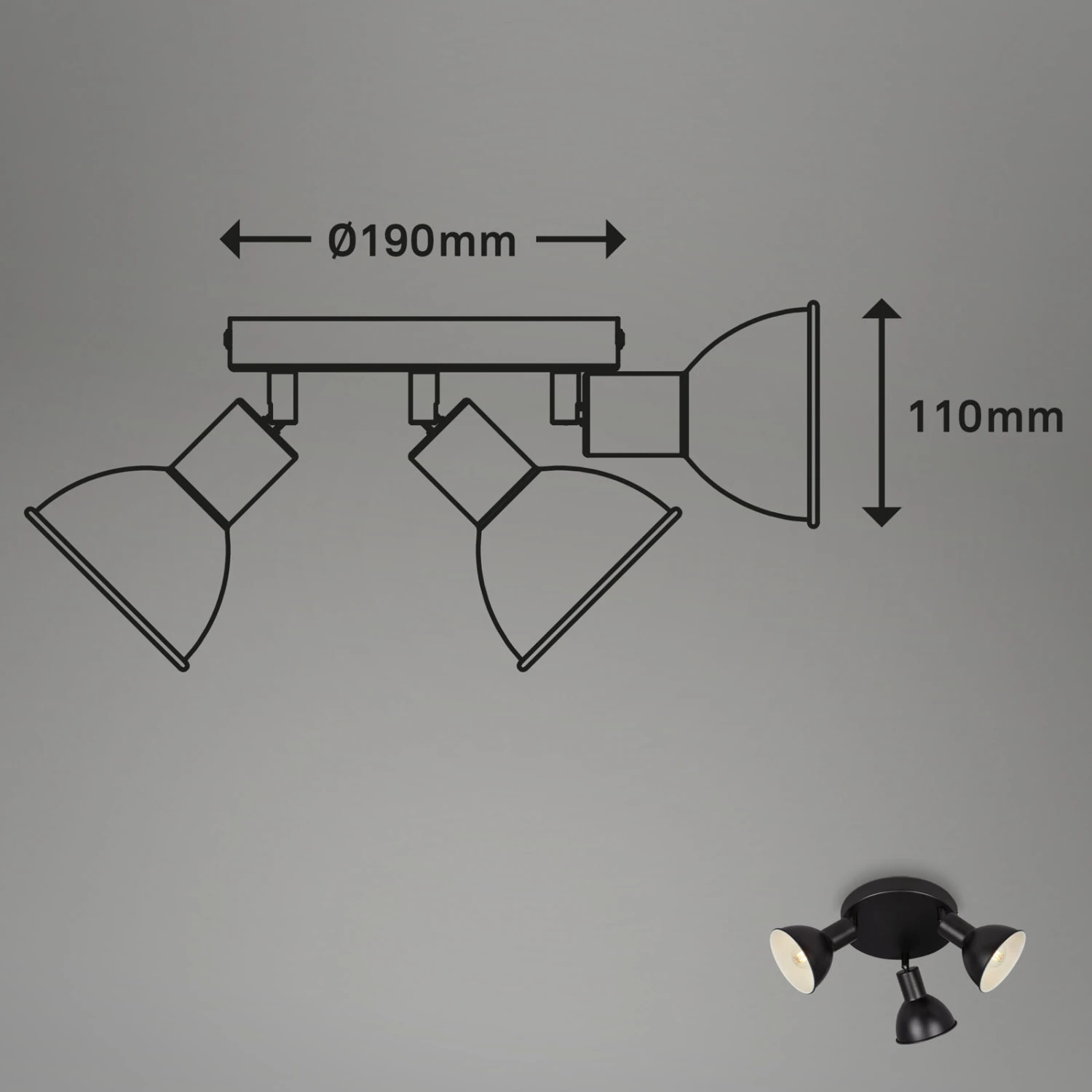 Spotleuchte Ø 19 Cm 3xexkl. E14 Max. 25W Schwarz