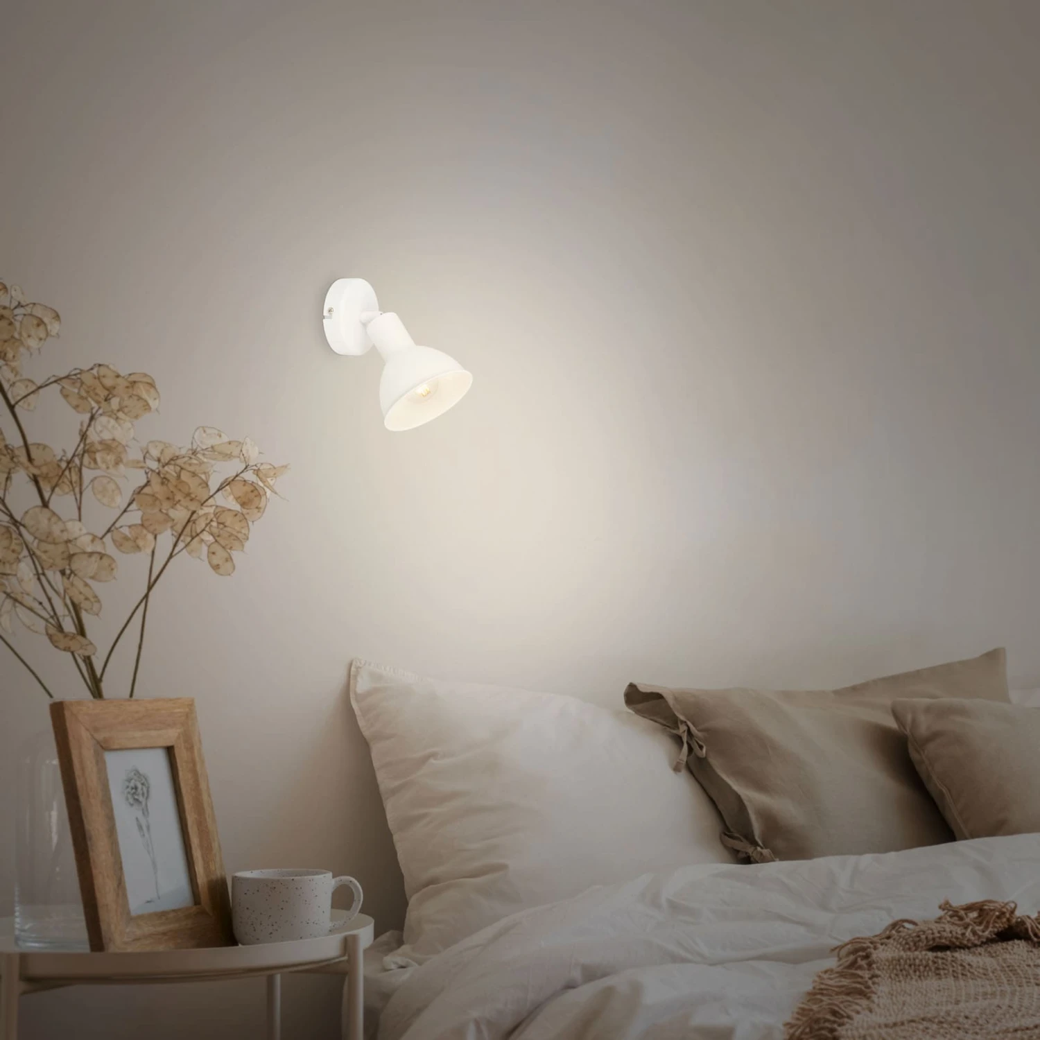 Für eine individuelle Beleuchtung sorgt der verstellbare und schwenkbare Lampenschirm des Wandspots. Er ist so vielseitig einsetzbar, dass er als Leseleuchte, Flur