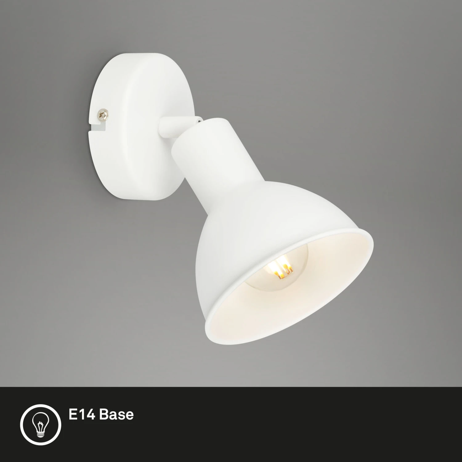 – oder Bettlampe verwendet werden kann. Für den Vintage-Spot wird eine E14-Birne mit einer maximalen Leistung von 25 Watt benötigt, die nicht im Lieferumfang enthalten ist. Der Grundstil dieser Retro Wandleuchte ist Minimalistisch. Die Dekolampe zeichnet sich durch ihre weiße Farbgebung aus. Der Lampenschirm des Deckenspots ist auf der Oberfläche und Innenseite in Weiß lackiert. Dies bietet eine schöne Optik in Hausflur und Schlafzimmer Die Wandleuchte hat eine kompakte Bauform mit den Produktabmessungen von 110 x 90 mm (HxD).
