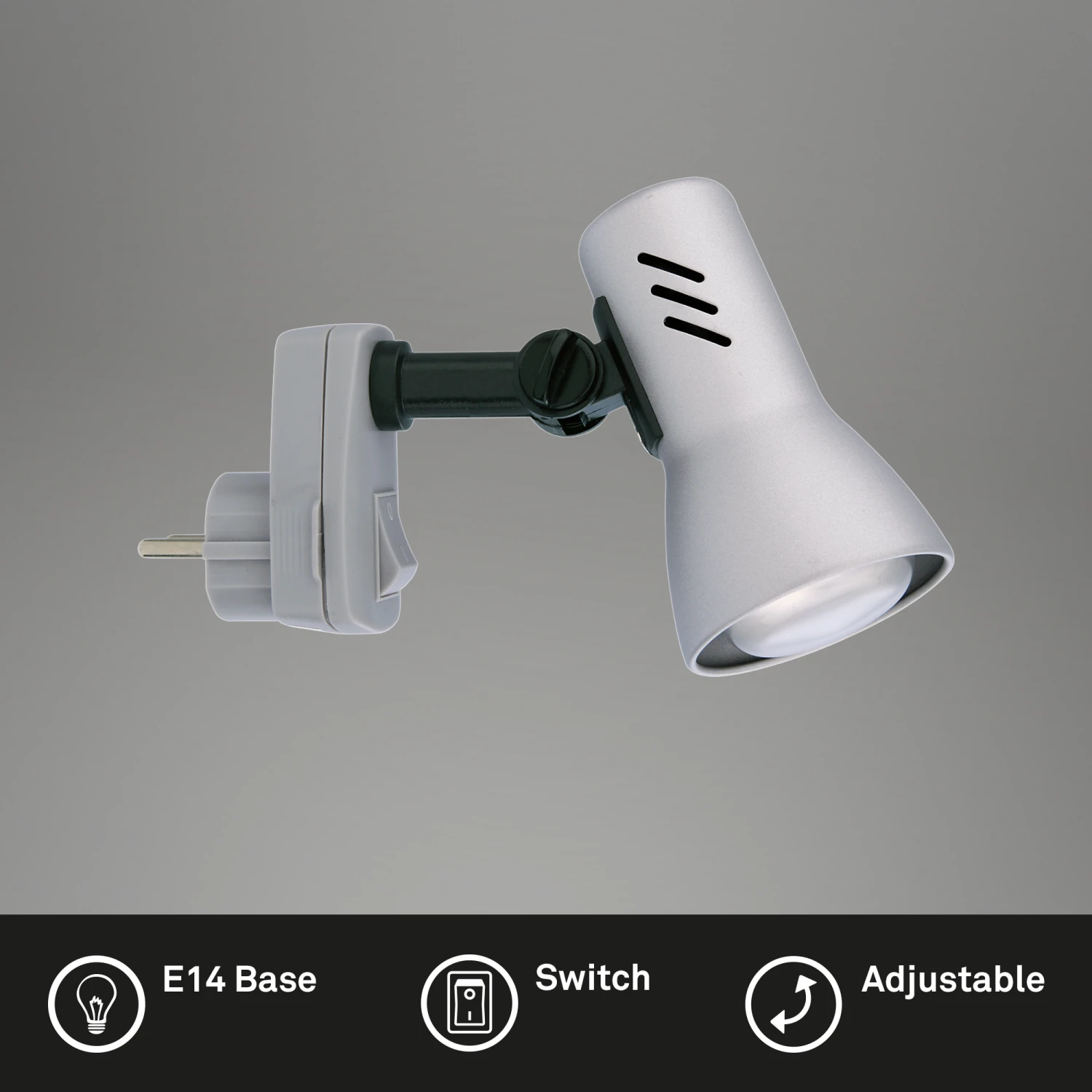 – Steckerspot in titan-farbig mit einer E14 Fassung, der mit maximal 25 Watt bestückt werden kann.