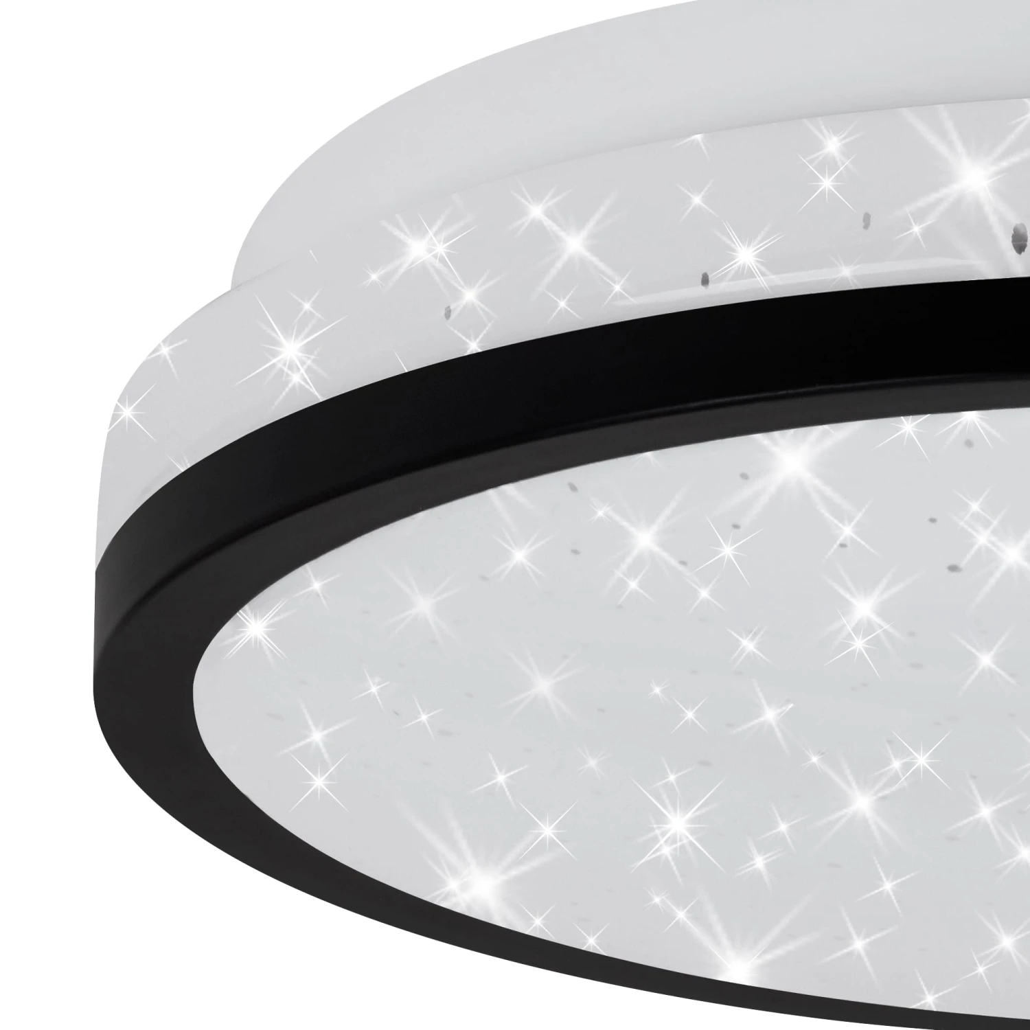 – Moderne, runde LED Deckenleuchte mit Sternenhimmel-Design (viele kleine Leuchtioden die zusätzlich zum Vorschein kommen, keine Projektion) in weiß-schwarz, gefertigt aus Kunststoff