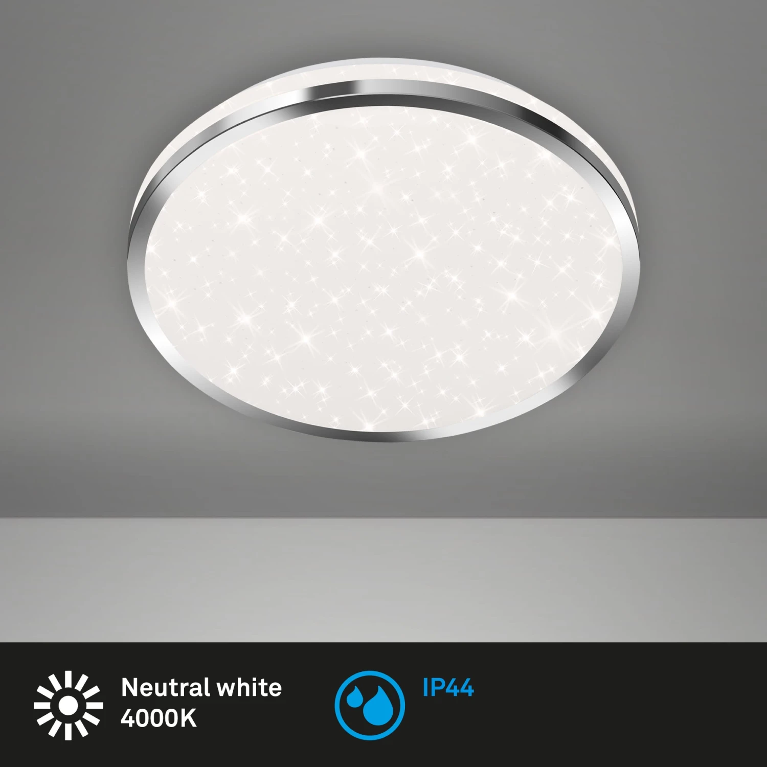 – Diese moderne, runde LED Deckenlampe, gefertigt aus Kunststoff, in weiß-chrom wird durch das Sternenhimmel-Design (viele kleine Leuchtioden die zusätzlich zum Vorschein kommen, keine Projektion) zu einem echten Hingucker in Ihren Räumlichkeiten