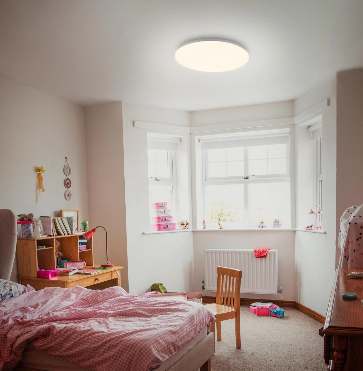 – Bei energiesparenden 15W erbringt die Kinderzimmerlampe eine Lichtleistung von 1200 Lumen