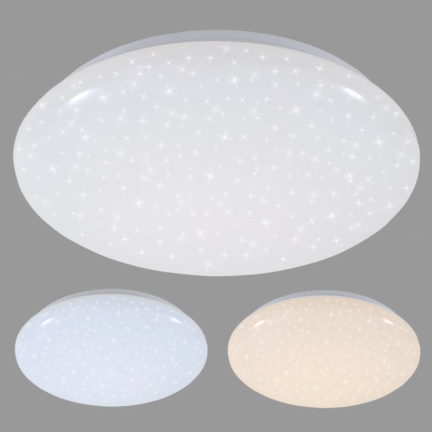 – Moderne LED Schlafzimmerlampe mit Sternenhimmel-Design (viele kleine Leuchtioden die zusätzlich zum Vorschein kommen, keine Projektion) in weiß, gefertigt aus Kunststoff-Metall